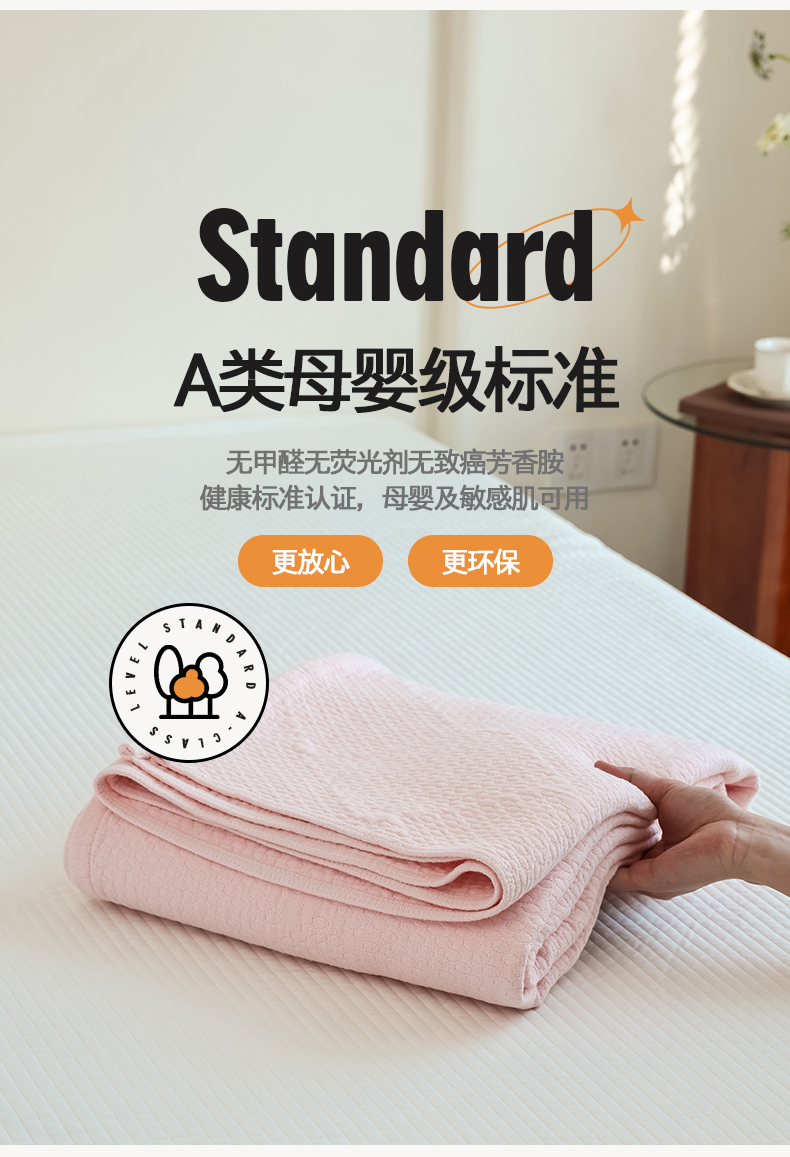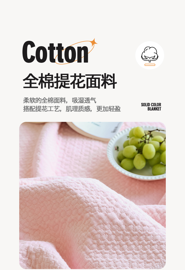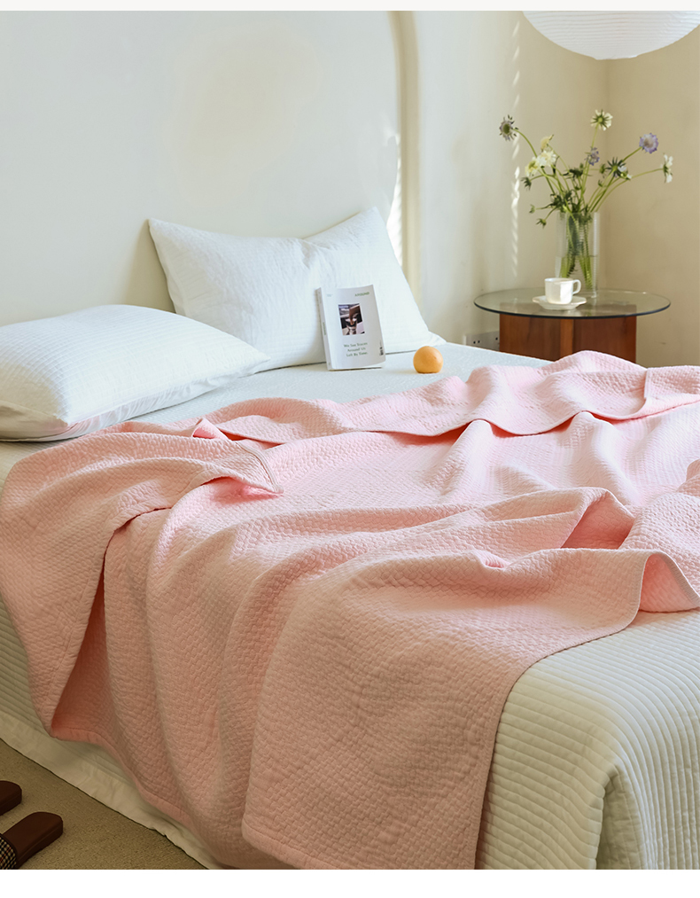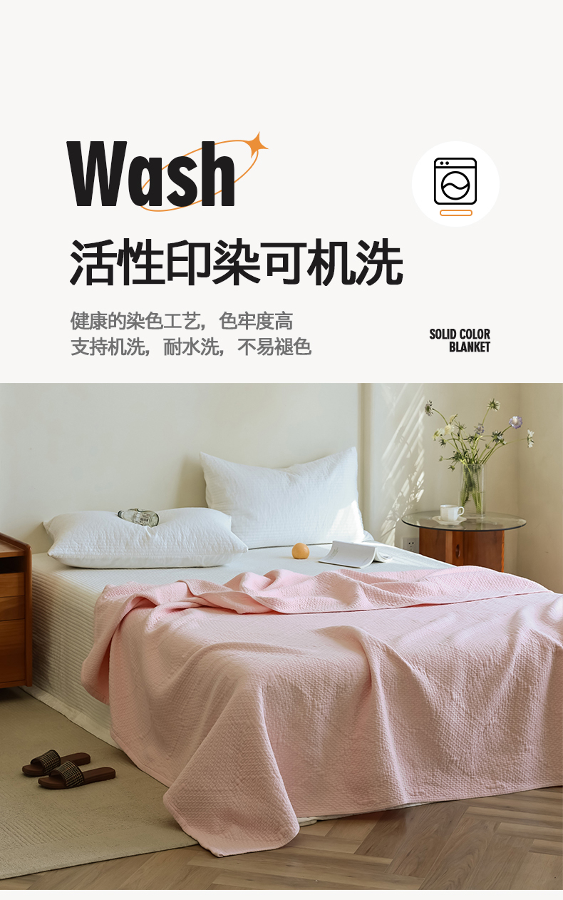商品名称:雯雨家纺2025新款A类全棉加厚六层纱提花纯色盖毯 六层纱-粉色