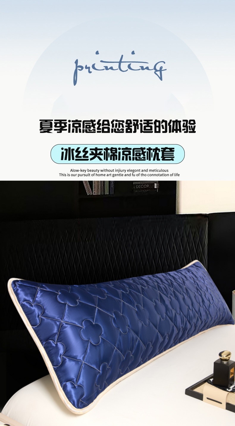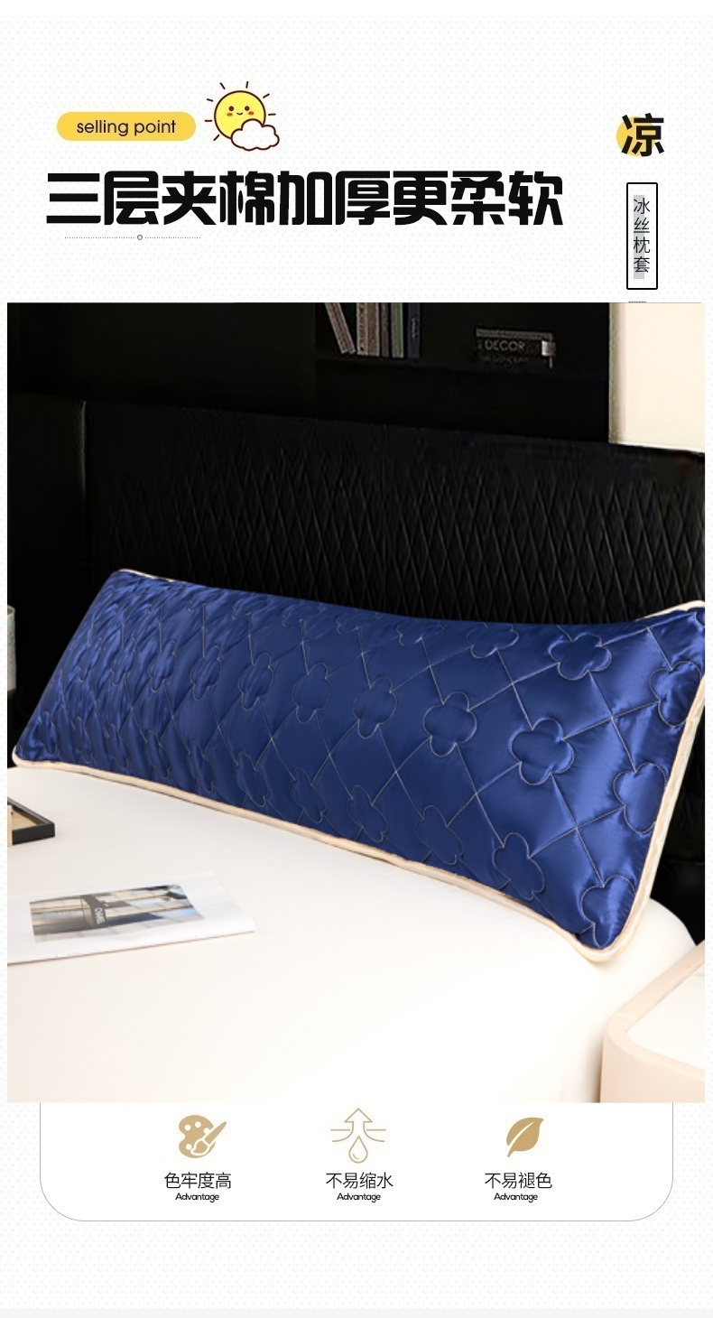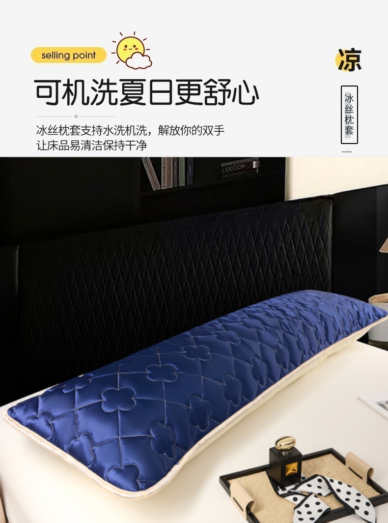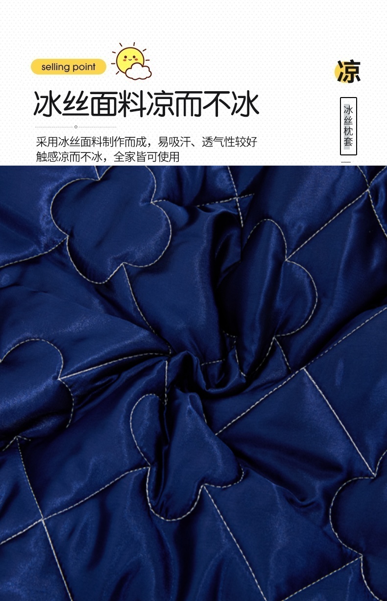 商品名称:梦舒羽 2025新款夏季冰丝凉感夹棉枕套双人情侣枕头套加长加厚枕芯套1.5m内胆套 夹棉加厚-深海蓝