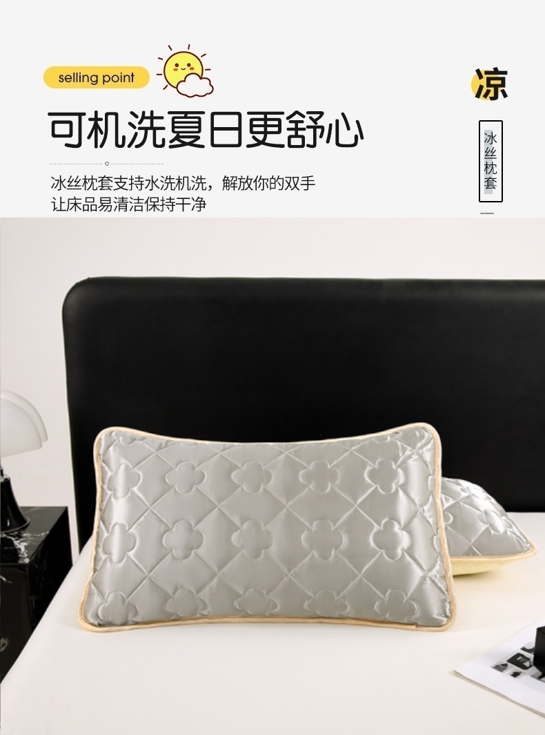 商品名称:梦舒羽 2025新款夏季冰丝凉感夹棉枕套单人一对装可水洗加厚枕头套宿舍48x74cm枕芯套 夹棉加厚-典雅灰