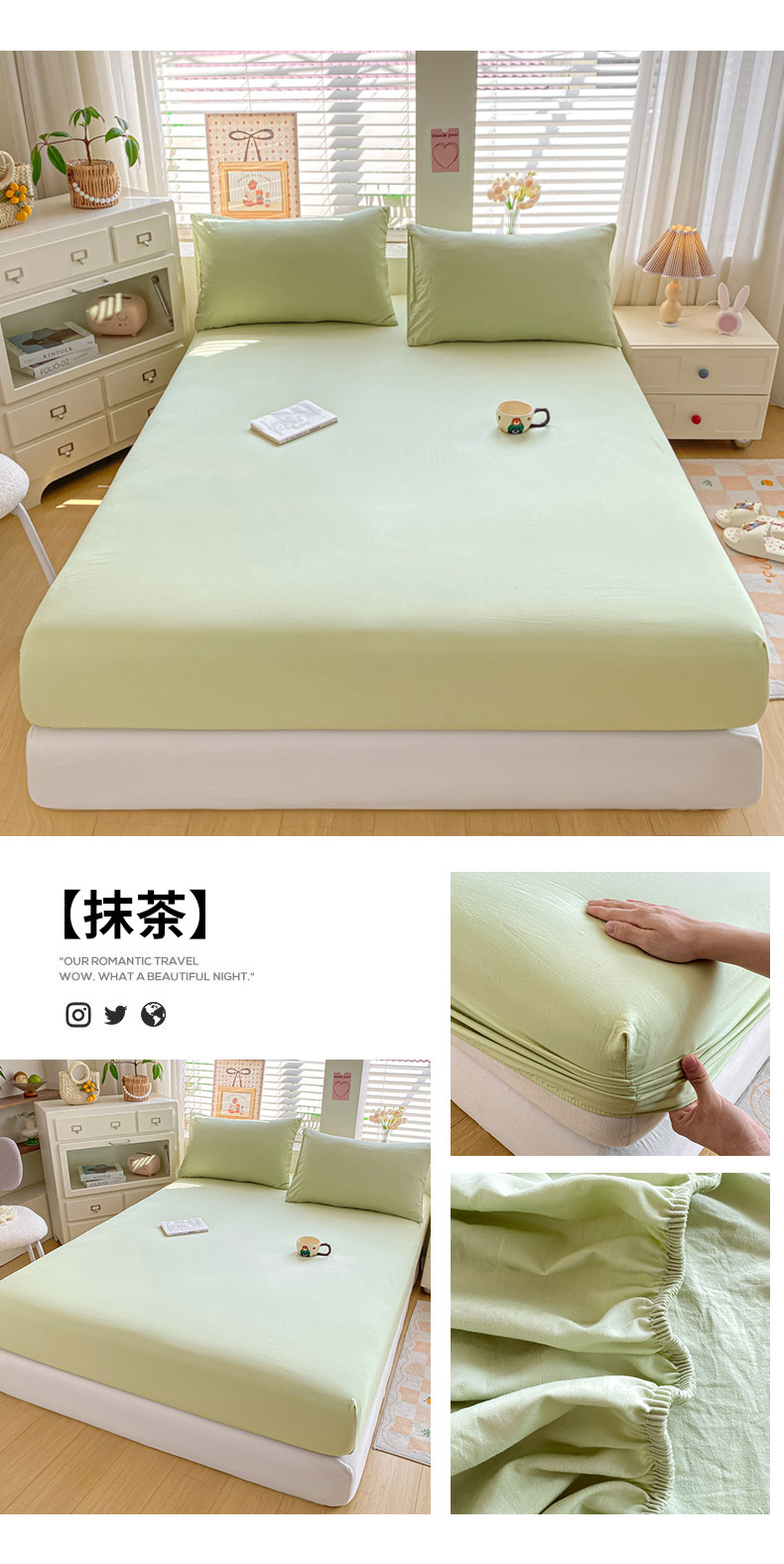 芷凡家纺 2025新款水洗皱皱云感棉纯色床笠 抹茶