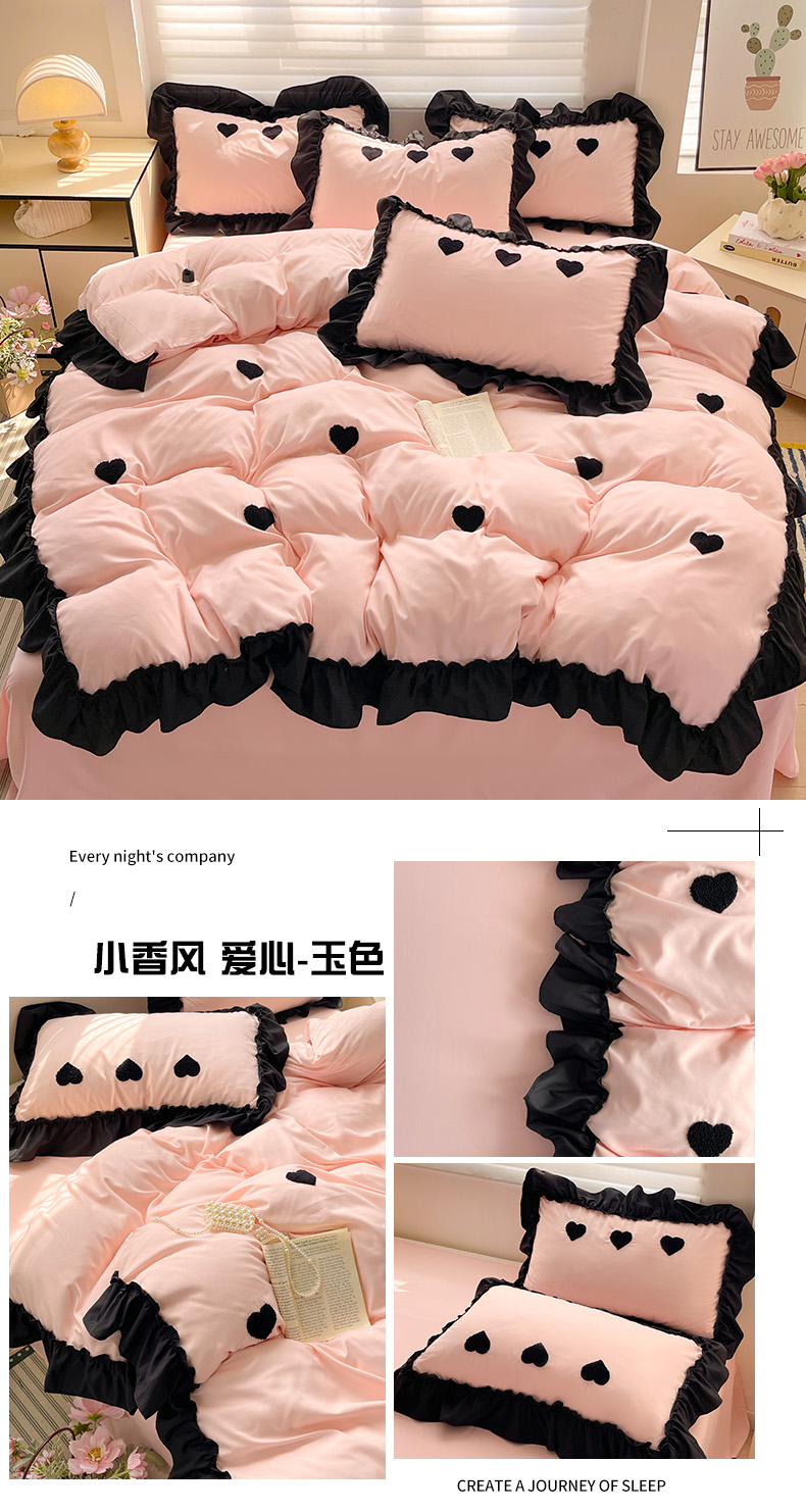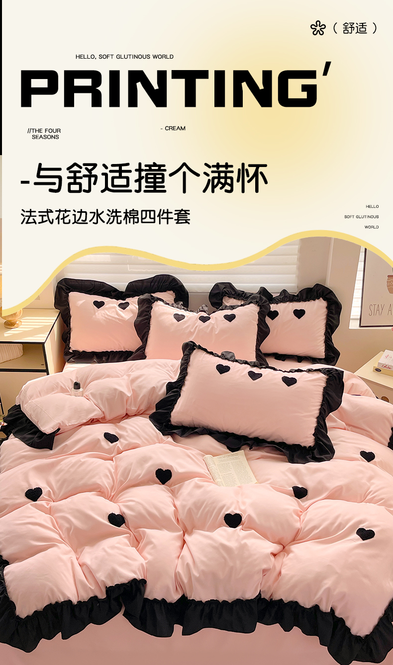 当前位置: 91家纺网 > 商品网购 > 床品套件 > 四件套 > 水洗棉四件套 > 艺玲家纺 2025新款赫本风系列法式花边水洗棉四件套 小香风 爱心-玉色