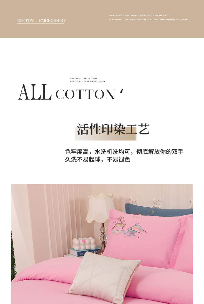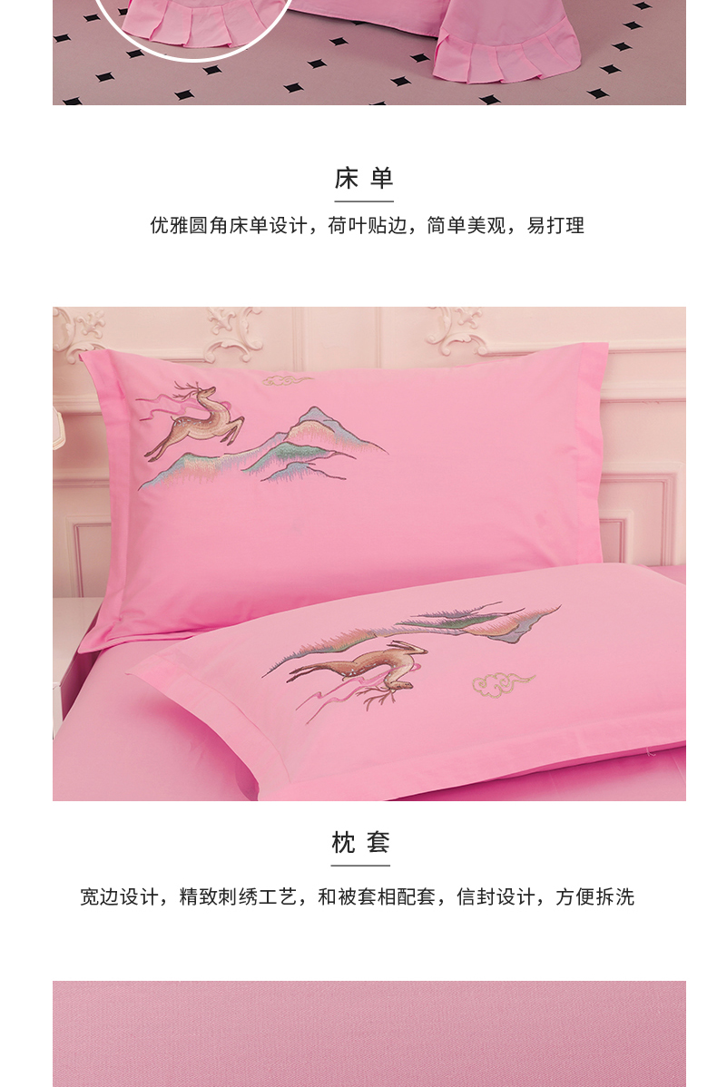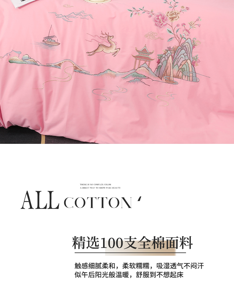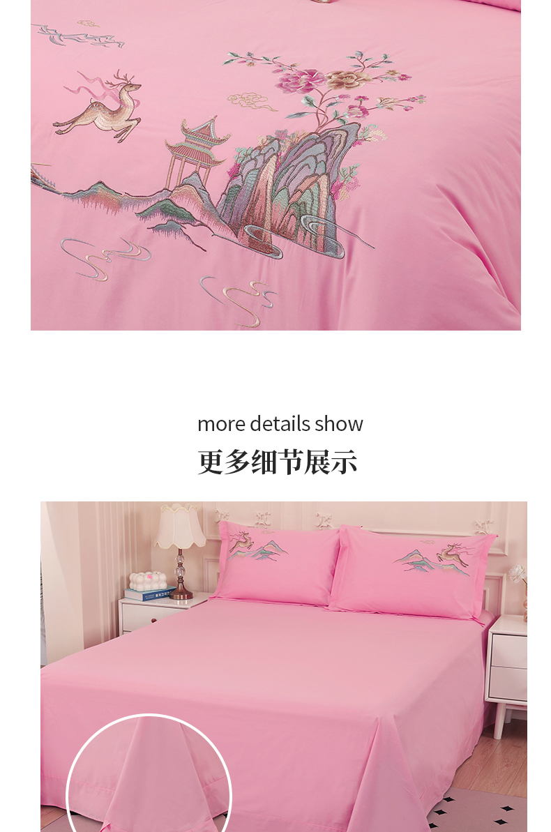 商品名称:浩情国际婚庆供货中心 2026新款100支全棉高端刺绣四件套一鹿常红系列 一鹿常红-粉玉