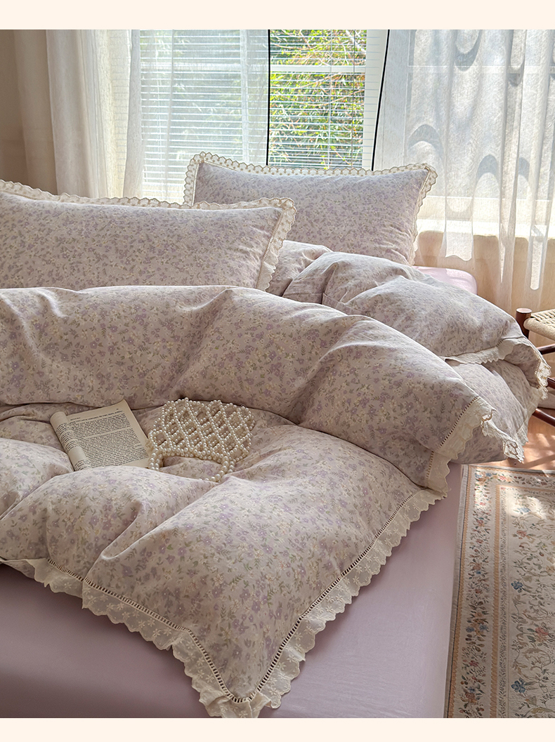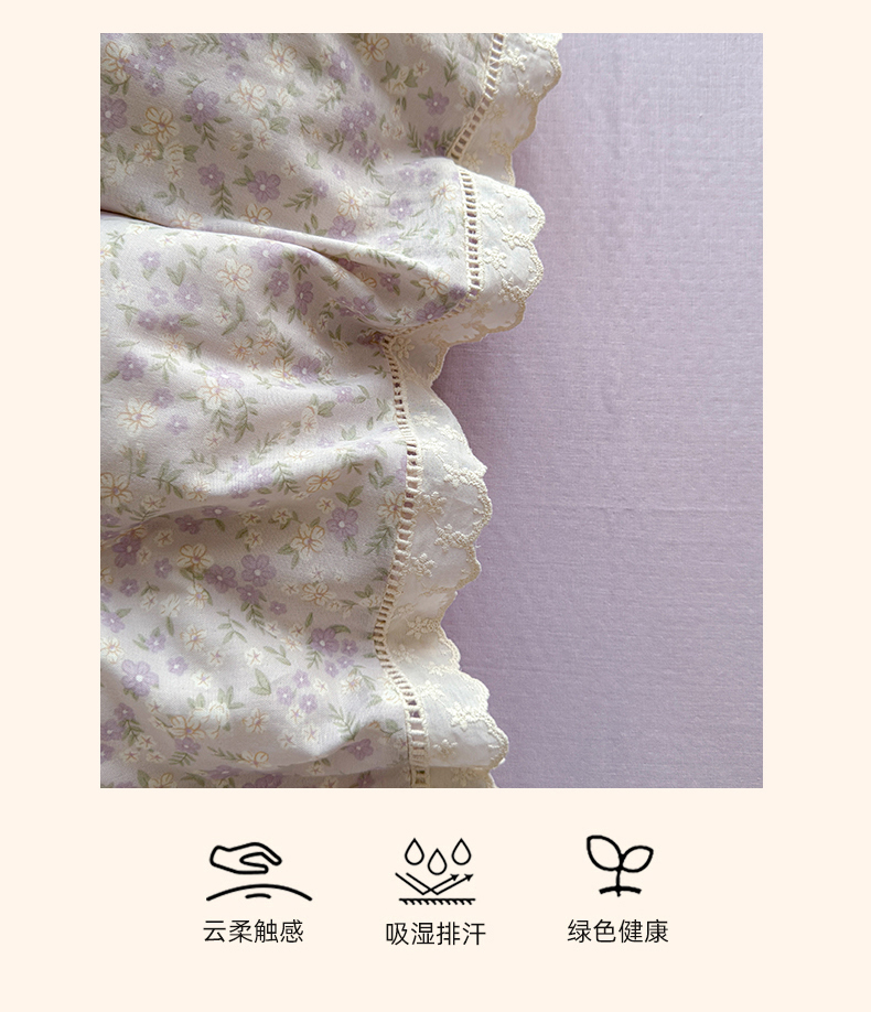 商品名称:曼之夏 2025新款A类全棉双层纱花边四件套 恩彩