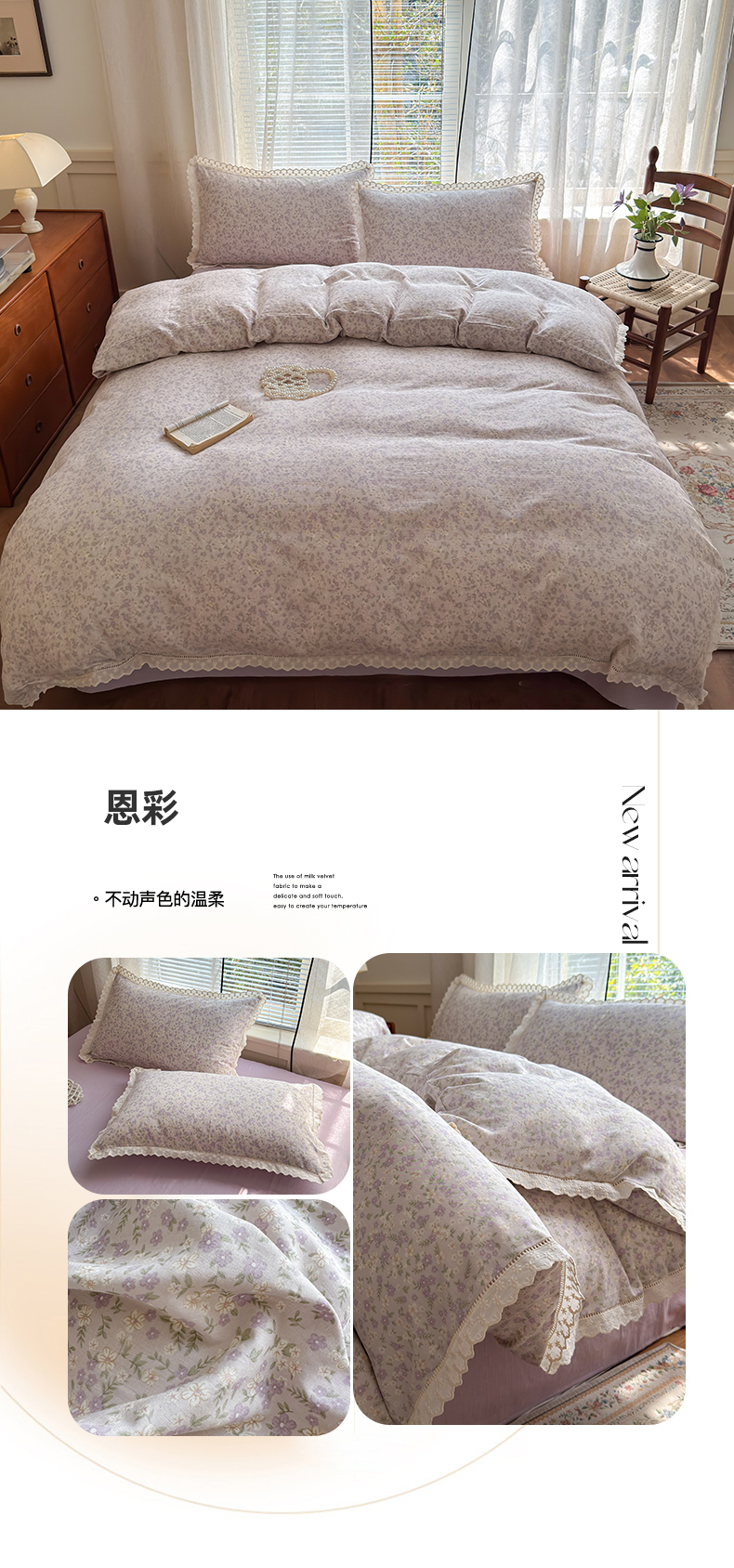 曼之夏 2025新款A类全棉双层纱花边四件套 恩彩