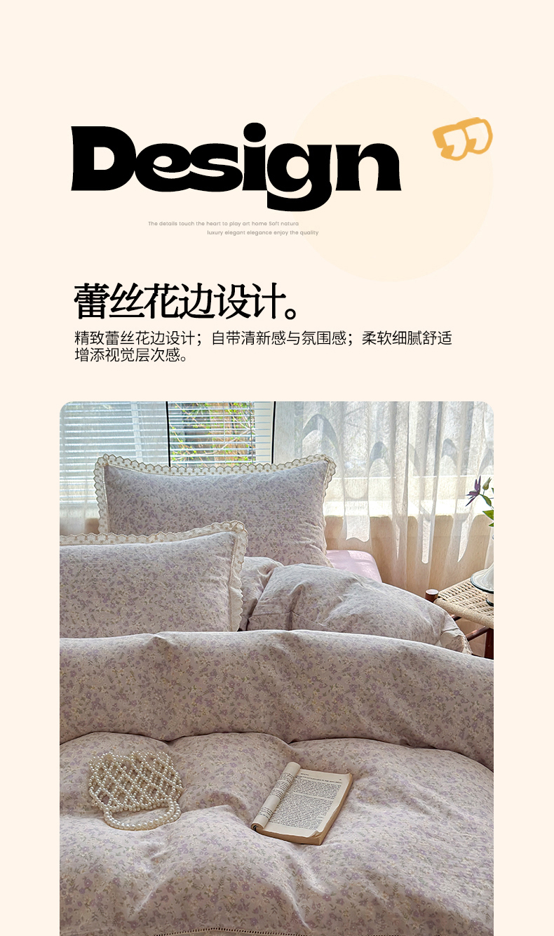 (总)曼之夏 2025新款A类全棉双层纱花边四件套,春风里,恩彩,观夏,丽莎,洛神玫瑰,茉莉,如梦令,苏打绿,晚香玉,郁金香