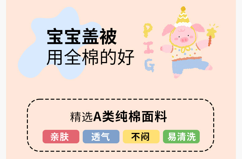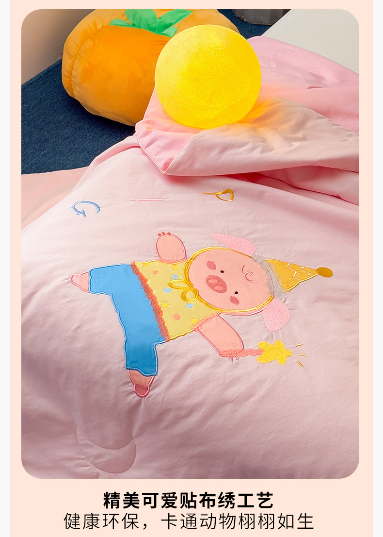 商品名称:2025新款快乐多巴胺纯棉夏被 粉色彩虹小猪猪