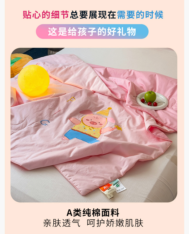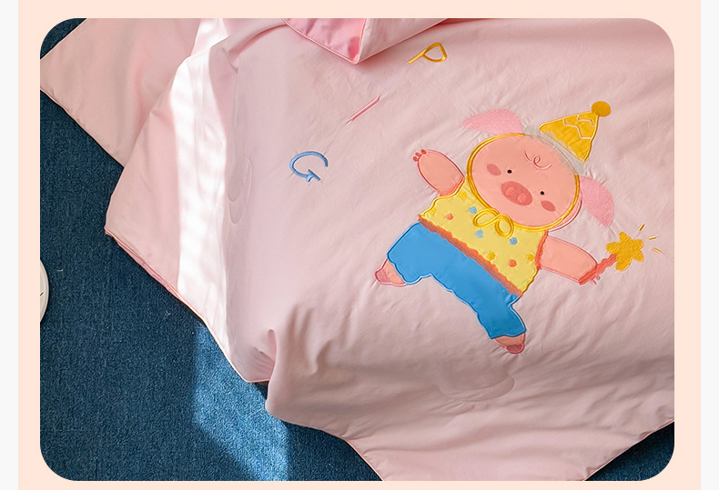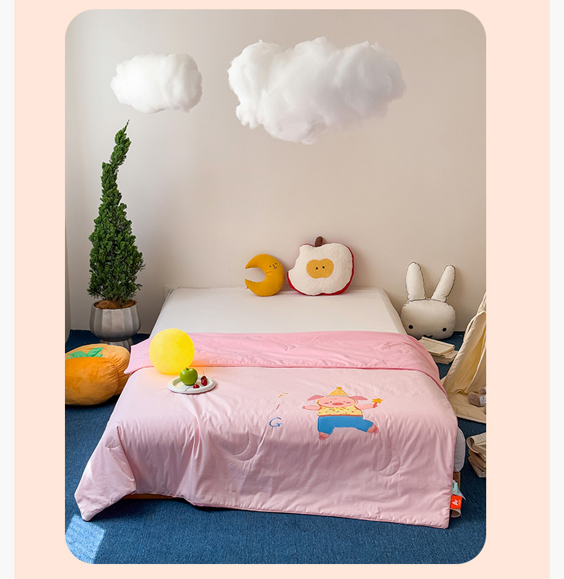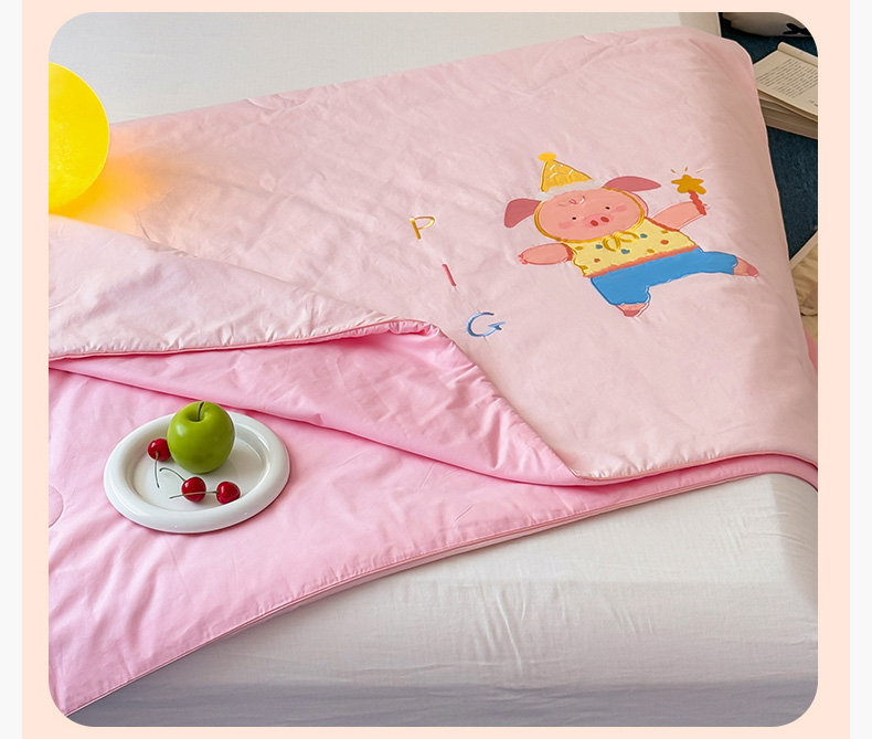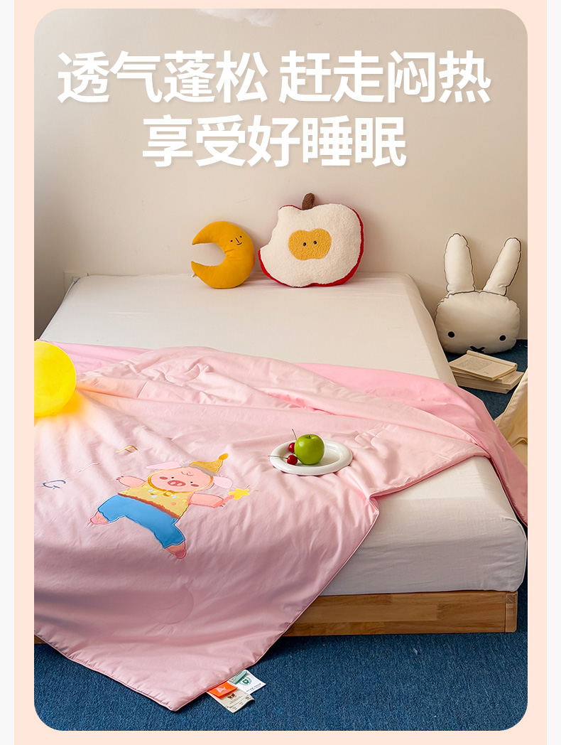 2025新款快乐多巴胺纯棉夏被 粉色彩虹小猪猪