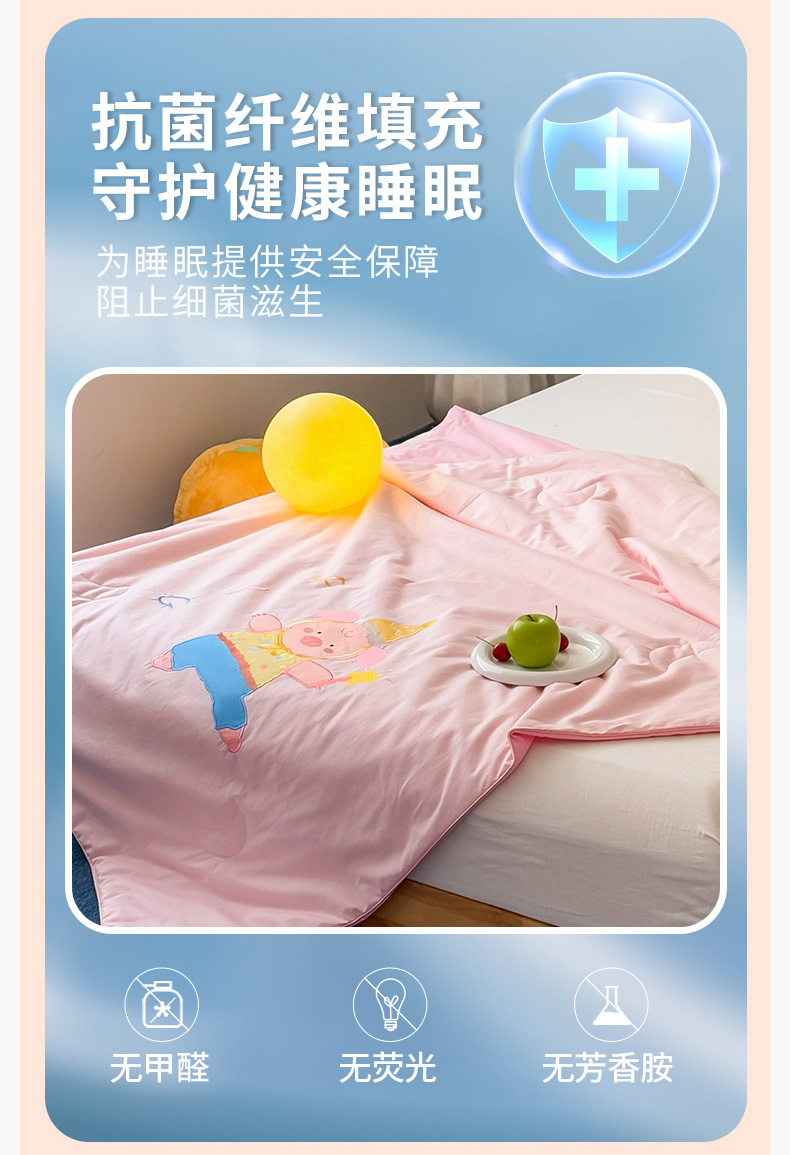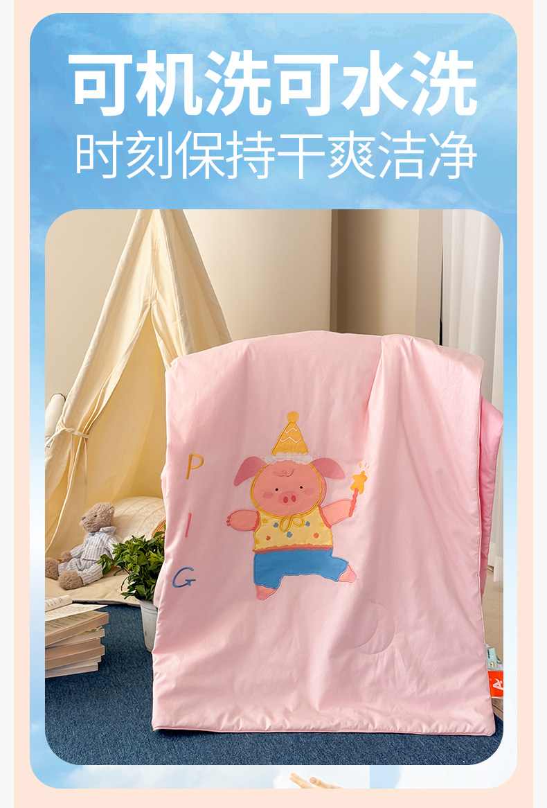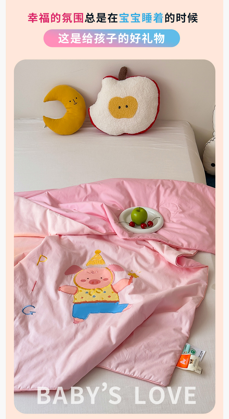 2025新款快乐多巴胺纯棉夏被 粉色彩虹小猪猪