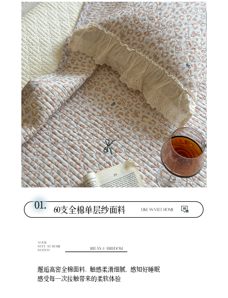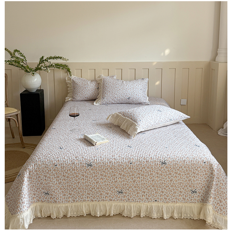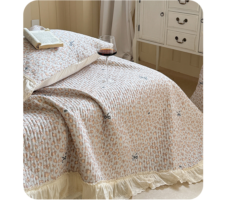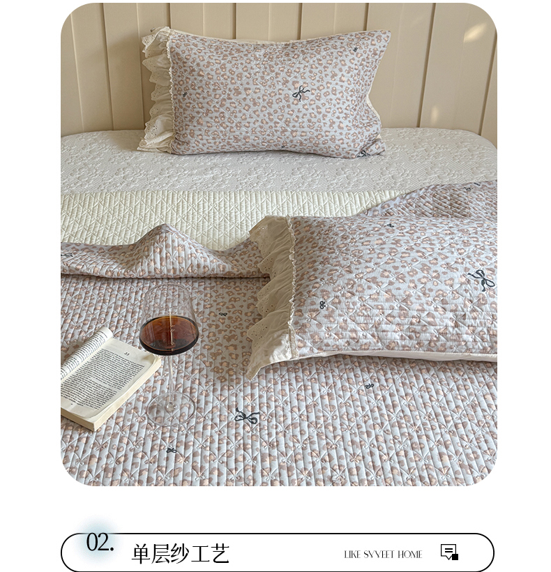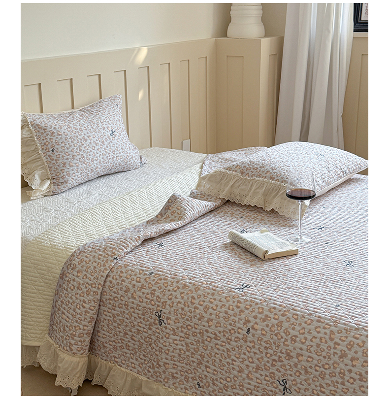 商品名称:麦伦家居 2025新款60s单层纱全棉床盖 豹纹蝴蝶结