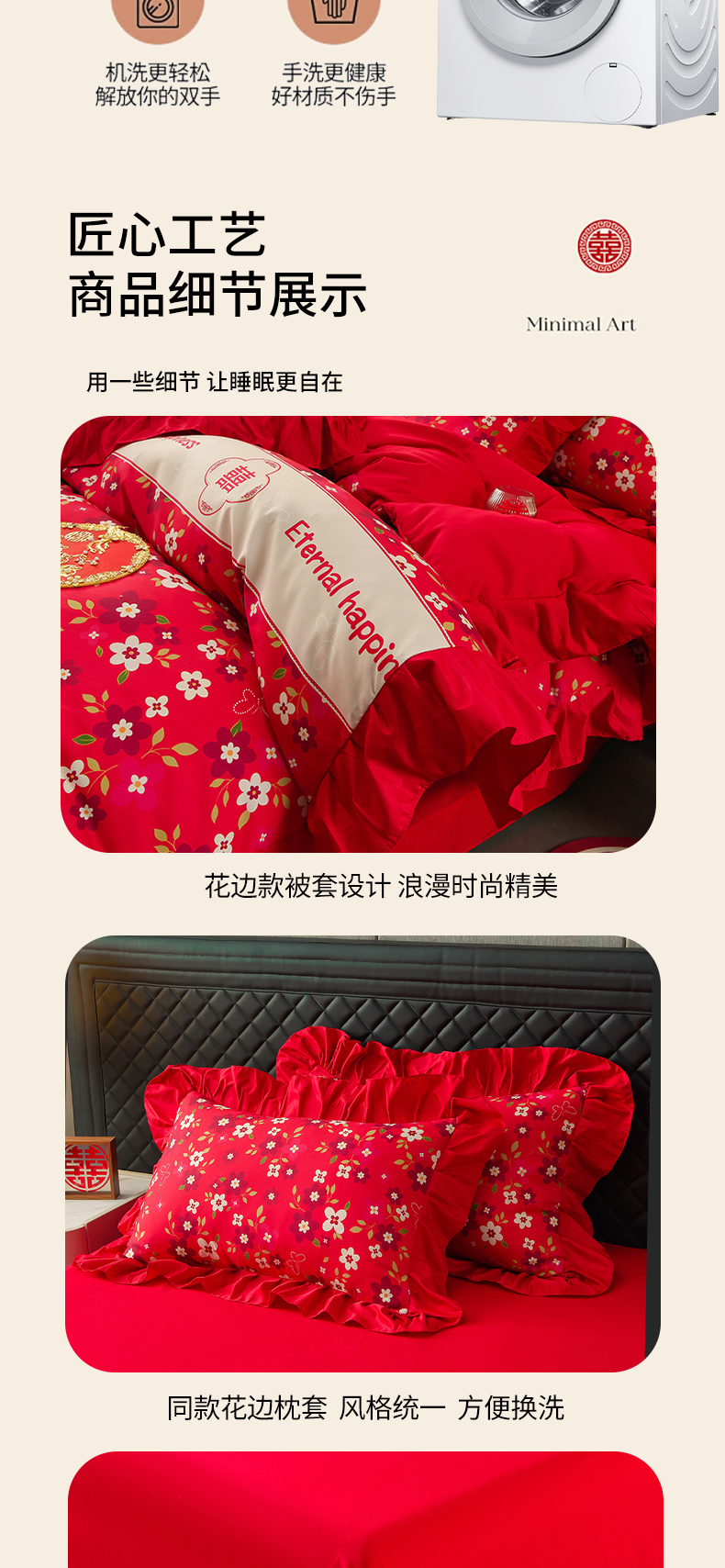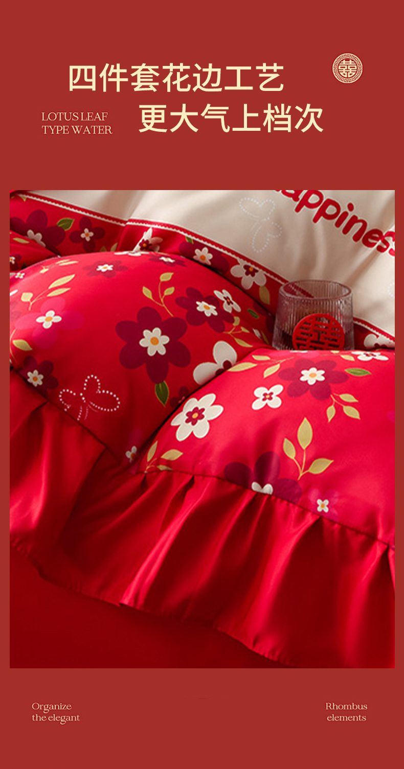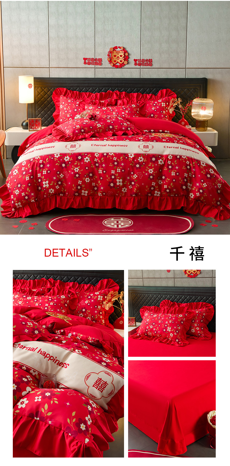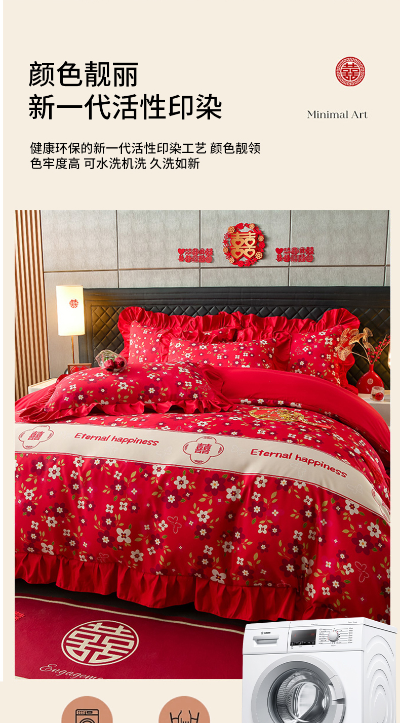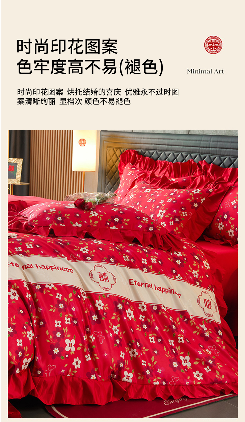 (总)卓缦2025新款亲肤棉韩版婚庆印花花边婚庆四件套,欢颜,千禧