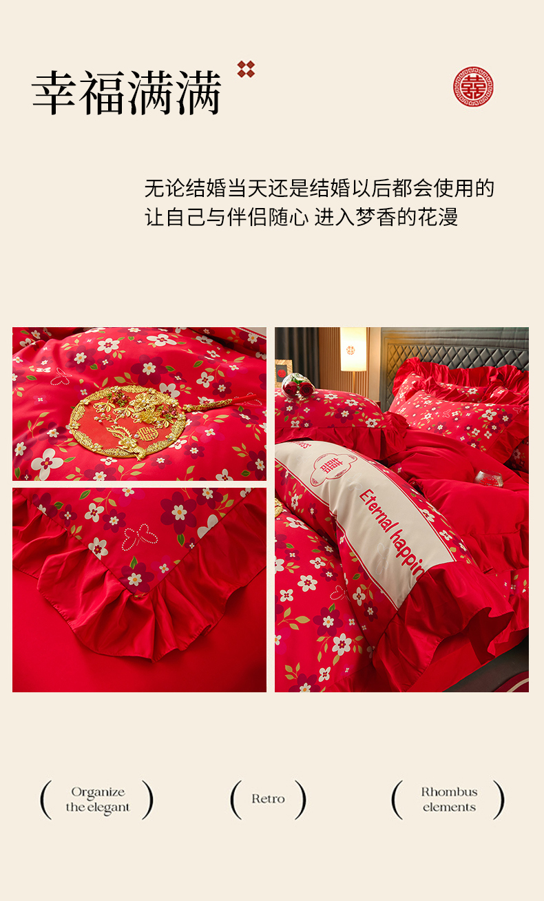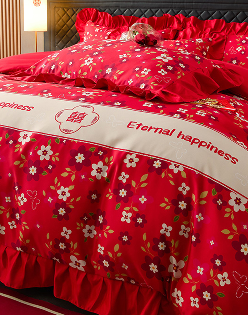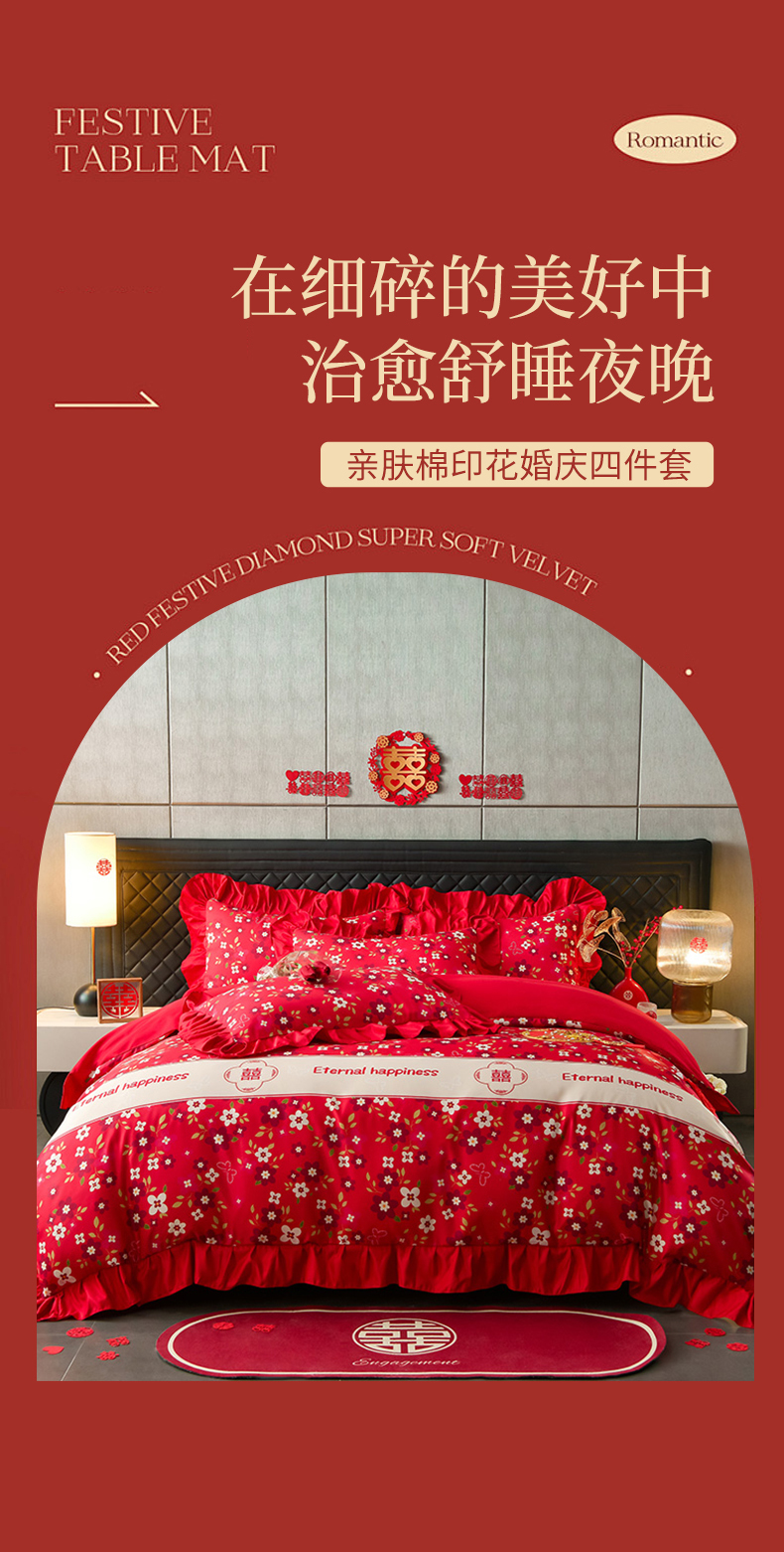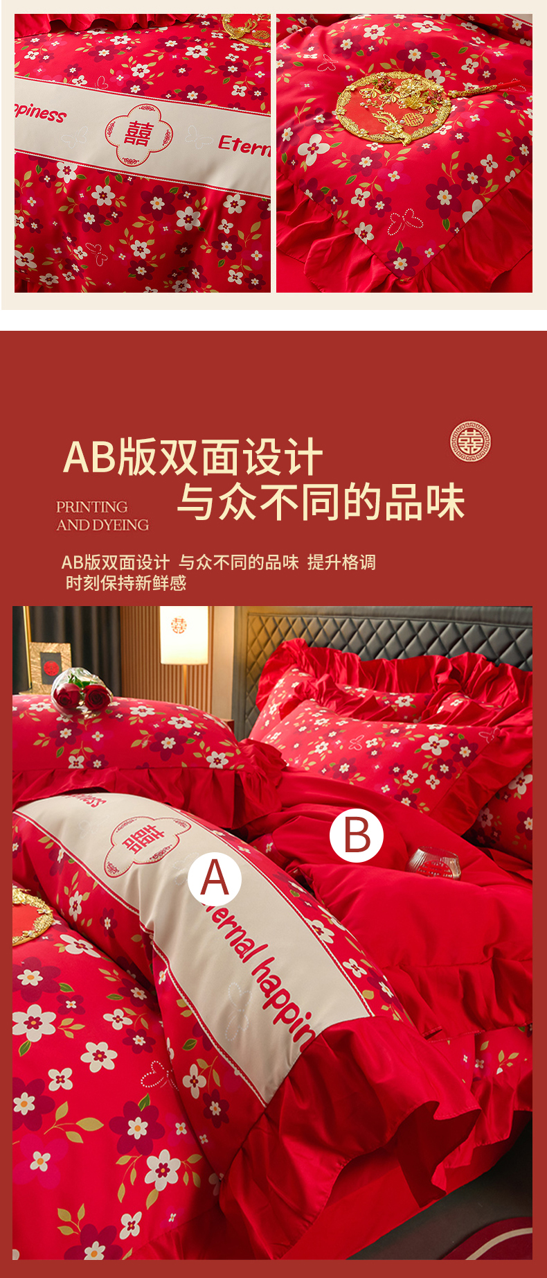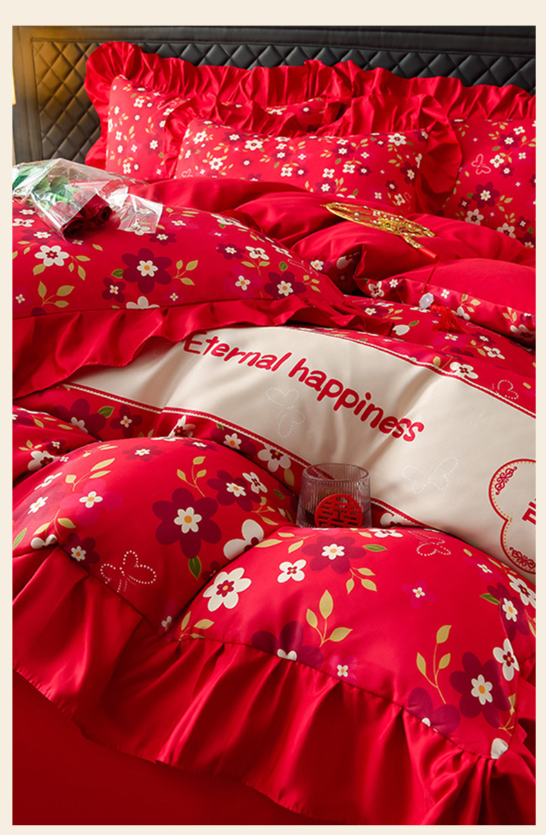 (总)卓缦2025新款亲肤棉韩版婚庆印花花边婚庆四件套,欢颜,千禧