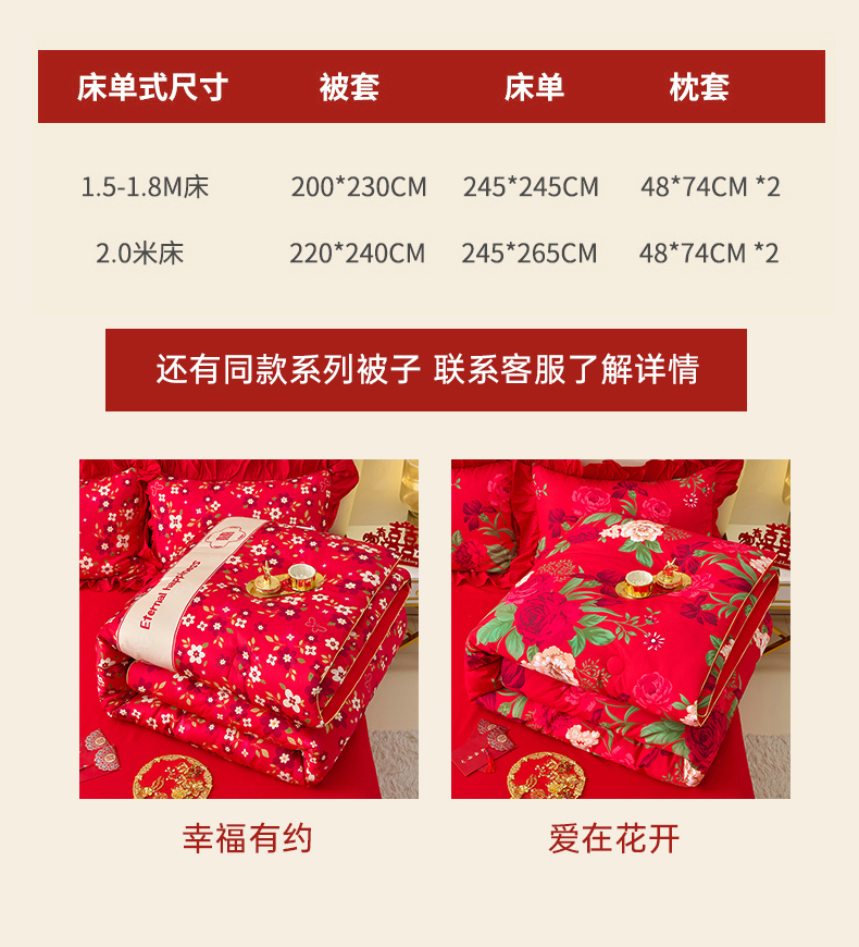 (总)卓缦家纺 2025新款提花刺绣婚庆四件套(控价50+),热情玫瑰,喜悦,永恒