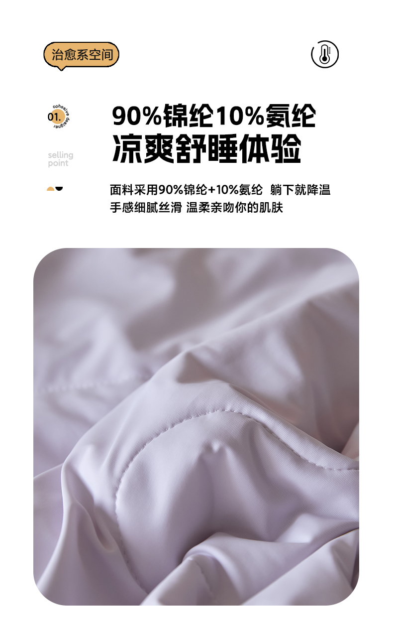 商品名称:圣梦莱羽绒家纺 2025春夏新款A类锦氨凉感丝高克重冰丝夏凉被亲肤丝绸被芯 夏至马卡龙