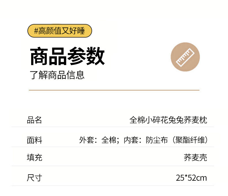 商品名称:(总)她喜爱枕芯 2025新款全棉纯棉小碎花兔兔荞麦枕枕头枕芯