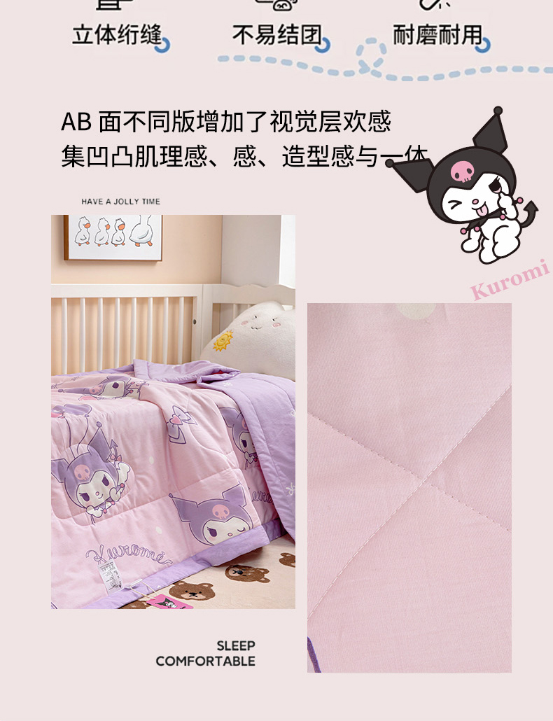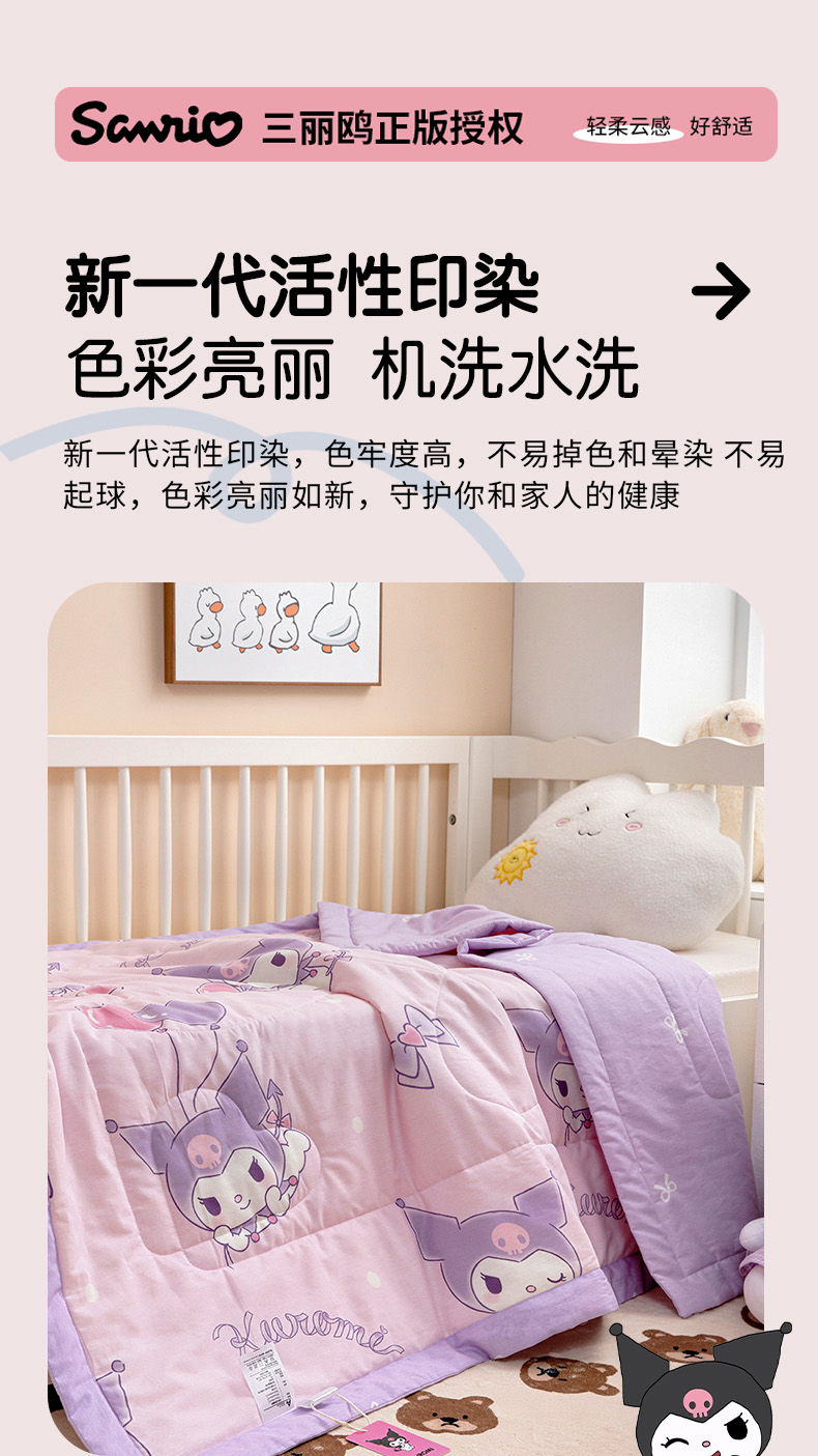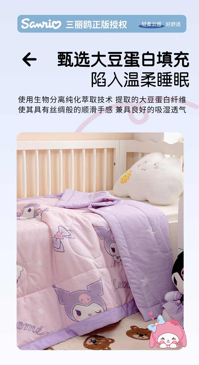 (总)芭伯妮 2025新款全棉三丽鸥大豆夏被 纯棉儿童夏被夏凉被空调被,蝴蝶结kitty,活力帕恰,凯蒂公主,气球库洛米,甜品玉桂狗,星星库洛米,洋娃娃A版(A、B版随机发货),洋娃娃B版(A、B版随机发货)