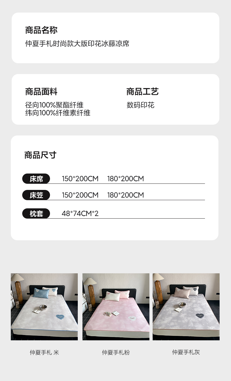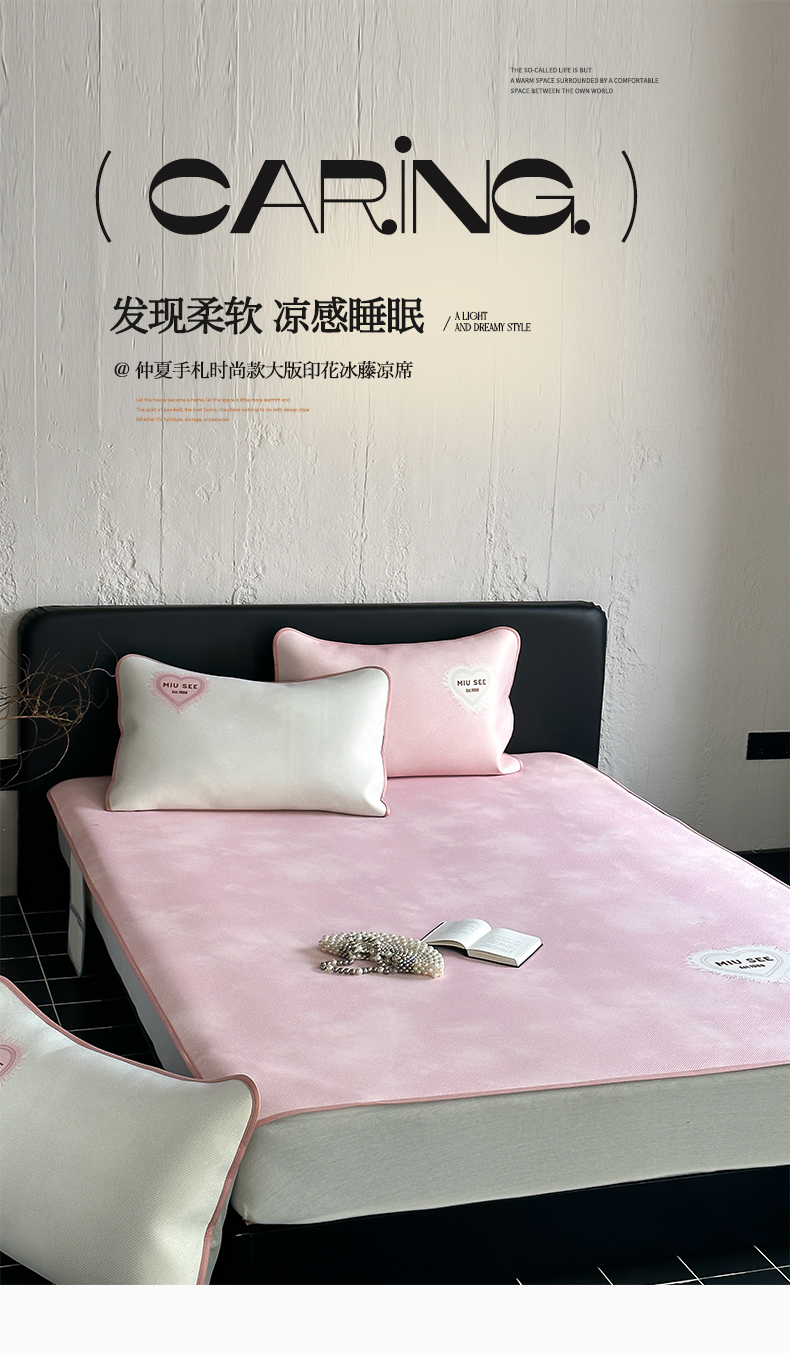 (总)三味舒屋 2025新款仲夏手札时尚印花冰藤凉席席子,仲夏手札米 床席,仲夏手札粉 床席,仲夏手札灰 床席,仲夏手札粉 床笠,仲夏手札灰 床笠,仲夏手札米 床笠
