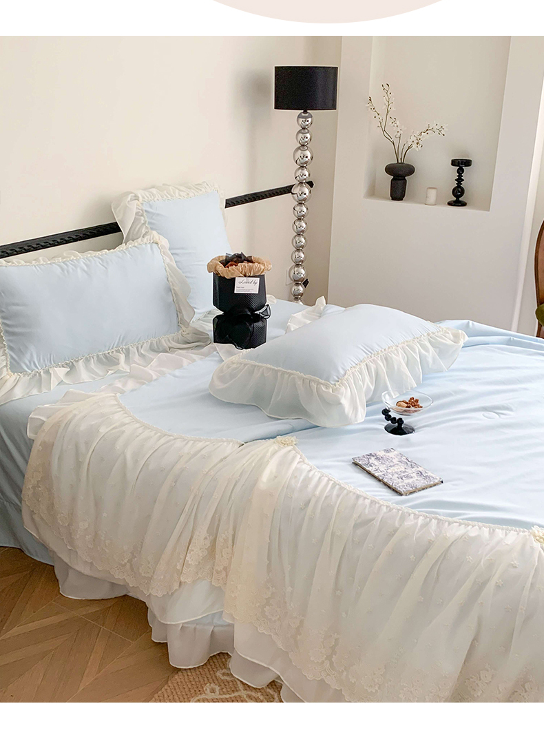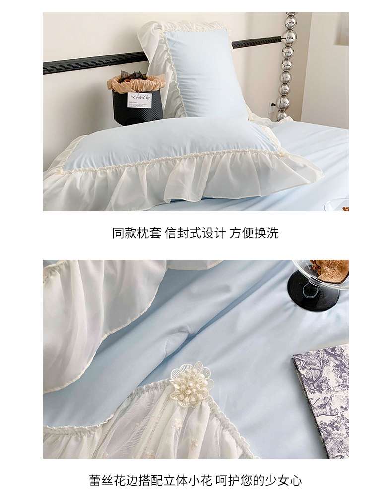 商品名称:2025新款A类法式花边爱丽莎夏被夏凉被空调被四件套 爱丽莎蓝