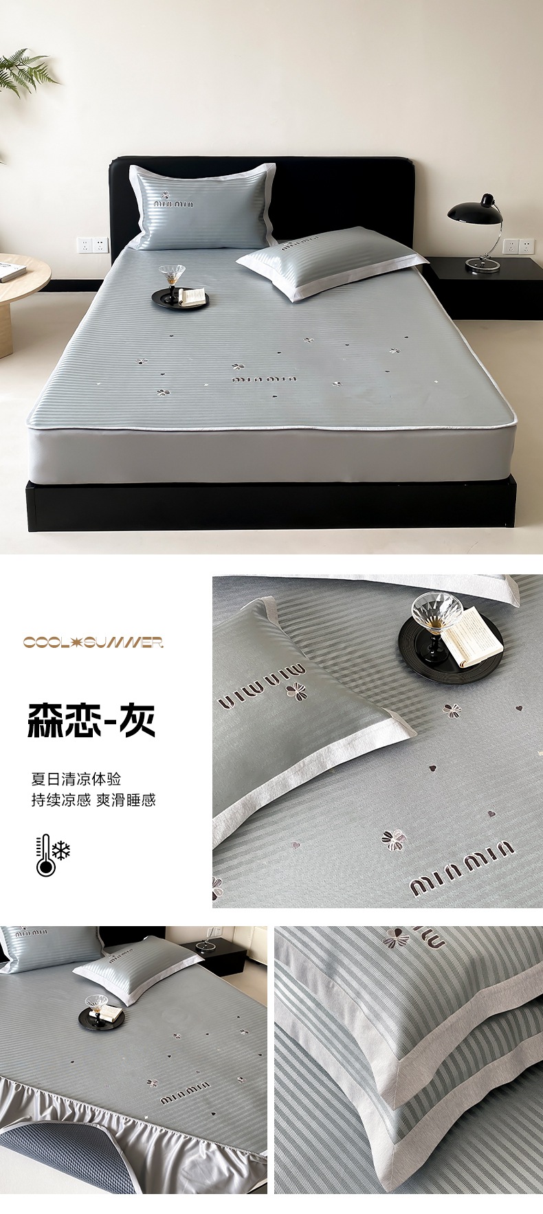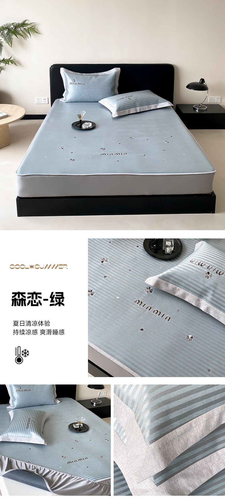 (总)由有家居 2025新款轻奢7A高精密抗菌可水洗色织提花进口刺绣冰丝凉席-森恋,森恋-灰,森恋-粉,森恋-咖,森恋-蓝,森恋-绿