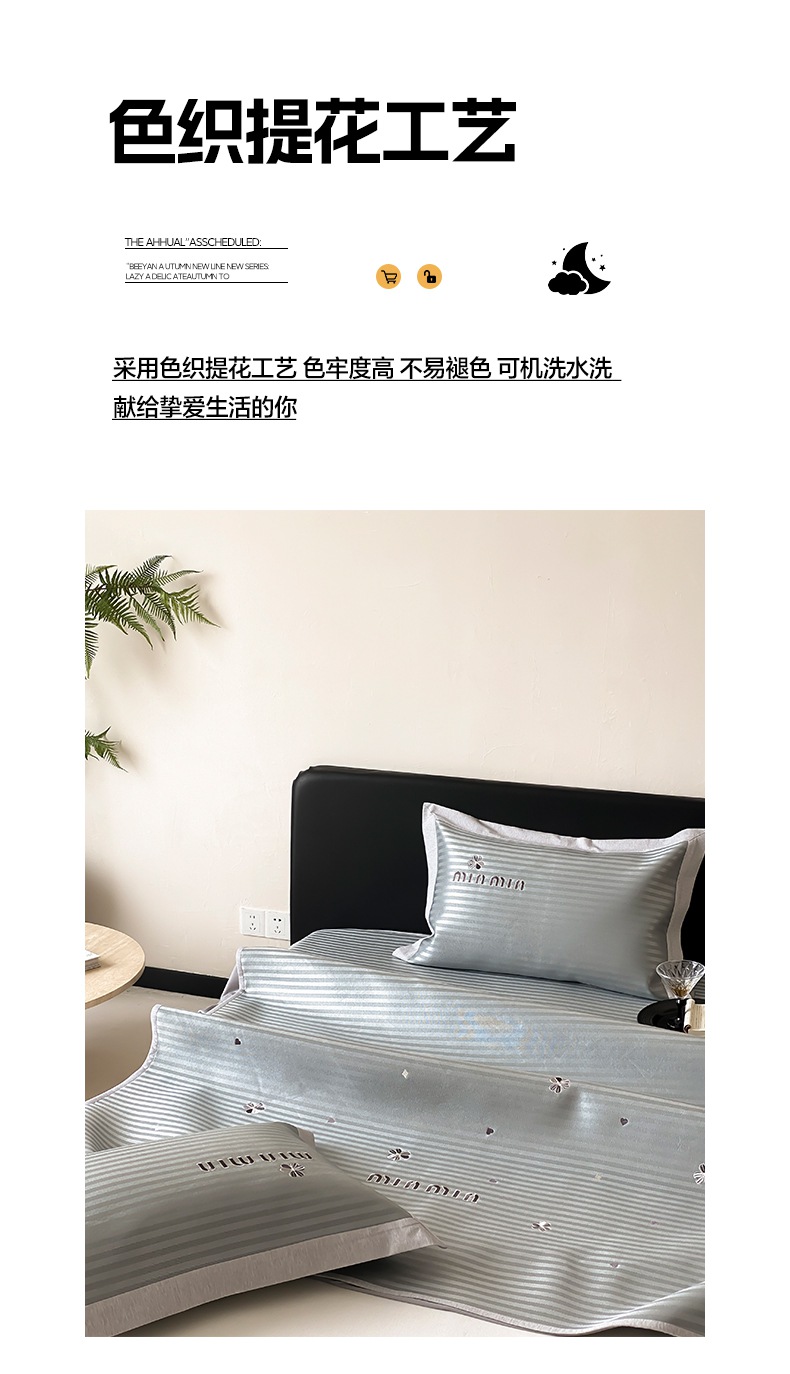 (总)由有家居 2025新款A类轻奢高精密7A抗菌色织可水洗冰丝床笠款凉席三件套,艾琳,都市,梵希,风尚,格调,华尔兹,极光,卡诺,洛可,觅,魔方,星球