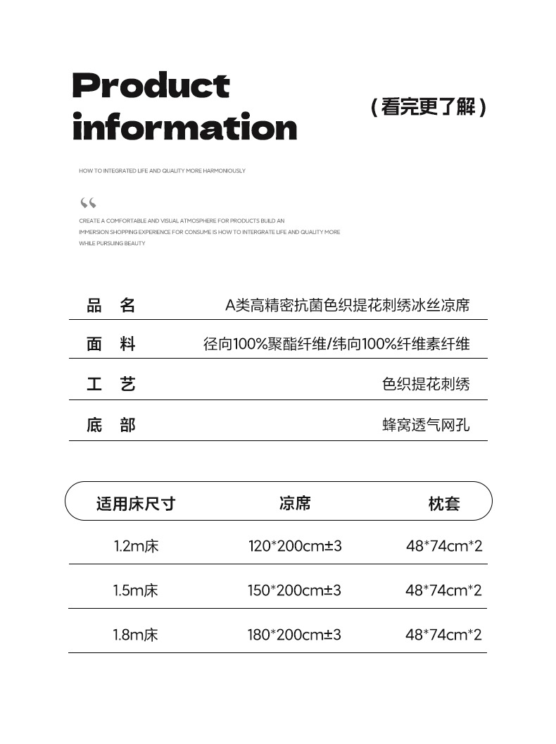 商品名称:(总)由有家居 2025新款轻奢7A高精密抗菌可水洗色织提花进口刺绣冰丝凉席-森恋