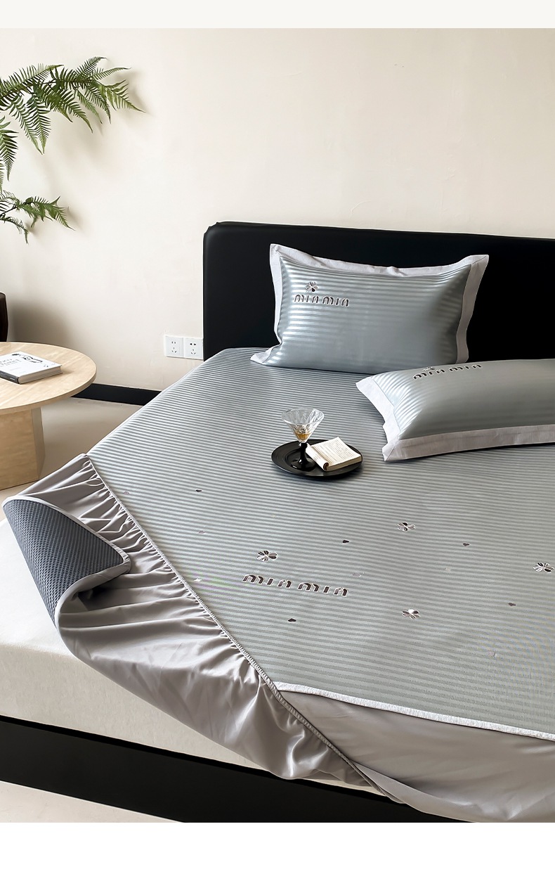 (总)由有家居 2025新款轻奢7A高精密抗菌可水洗色织提花进口刺绣冰丝凉席-森恋