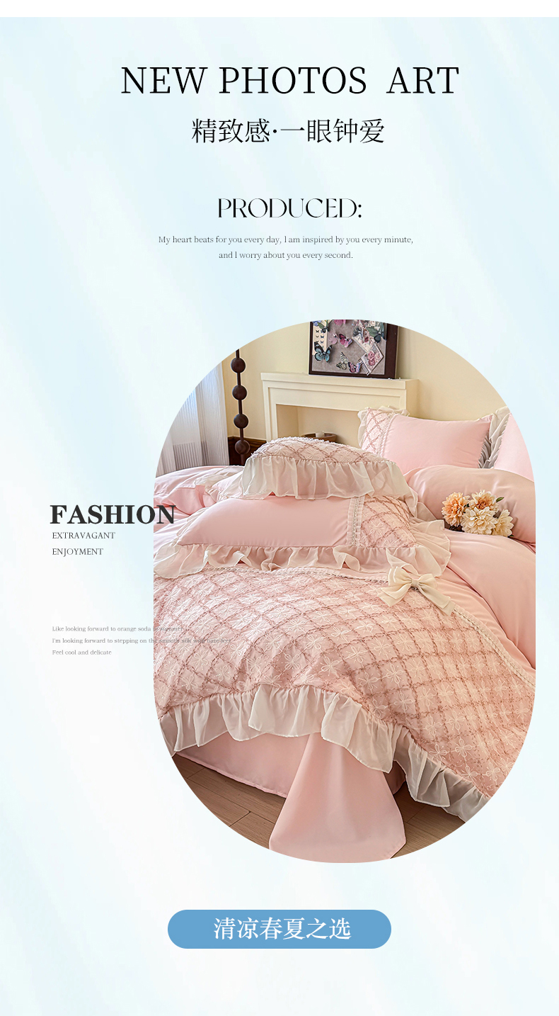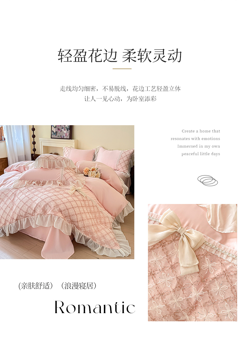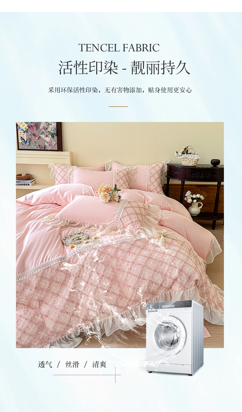 商品名称:凯美家居 2025新款水洗真丝蕾丝刺绣四件套 爱丽莎 浅粉