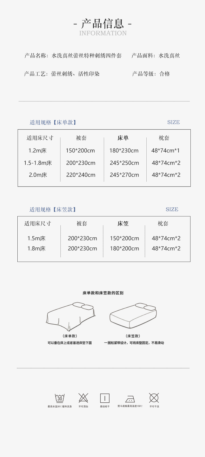 (总)凯美家居 2025新款水洗真丝蕾丝刺绣四件套,爱丽莎 浅粉,爱丽莎 奶白,爱丽莎 浅蓝,爱丽莎 浅紫,爱丽莎 香槟