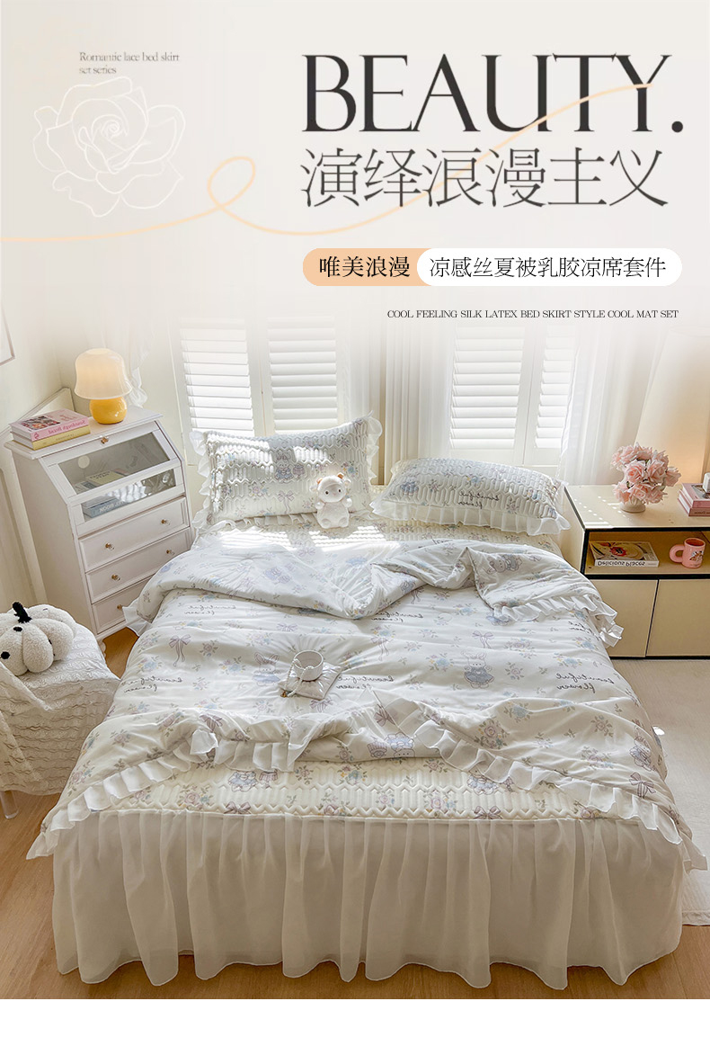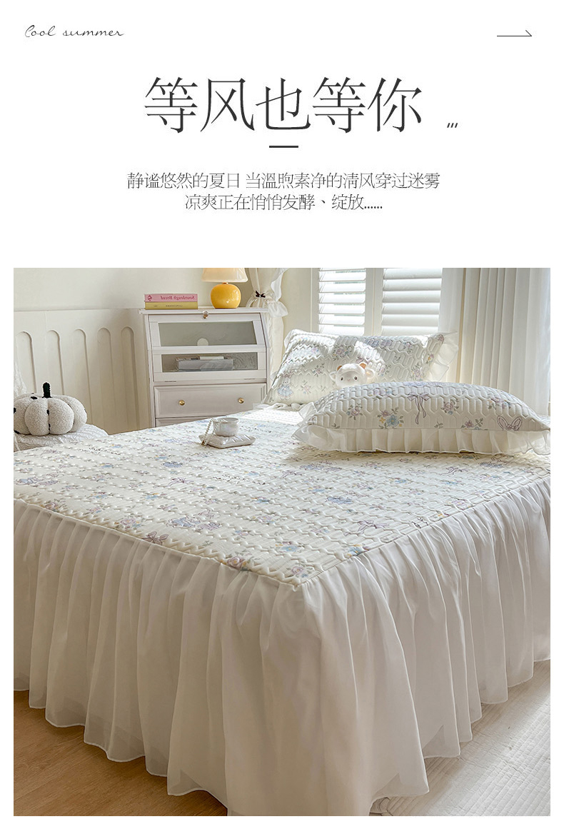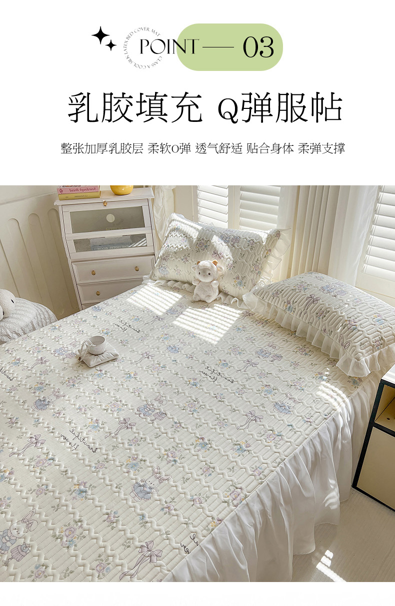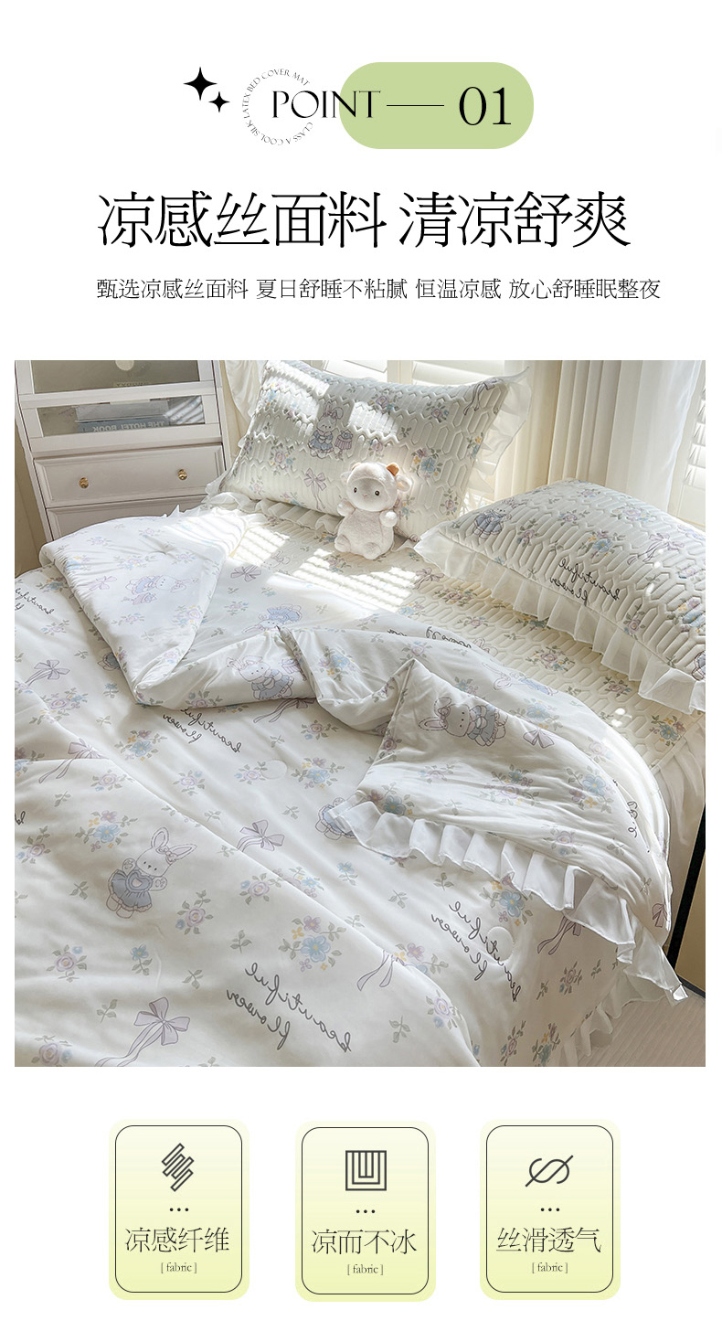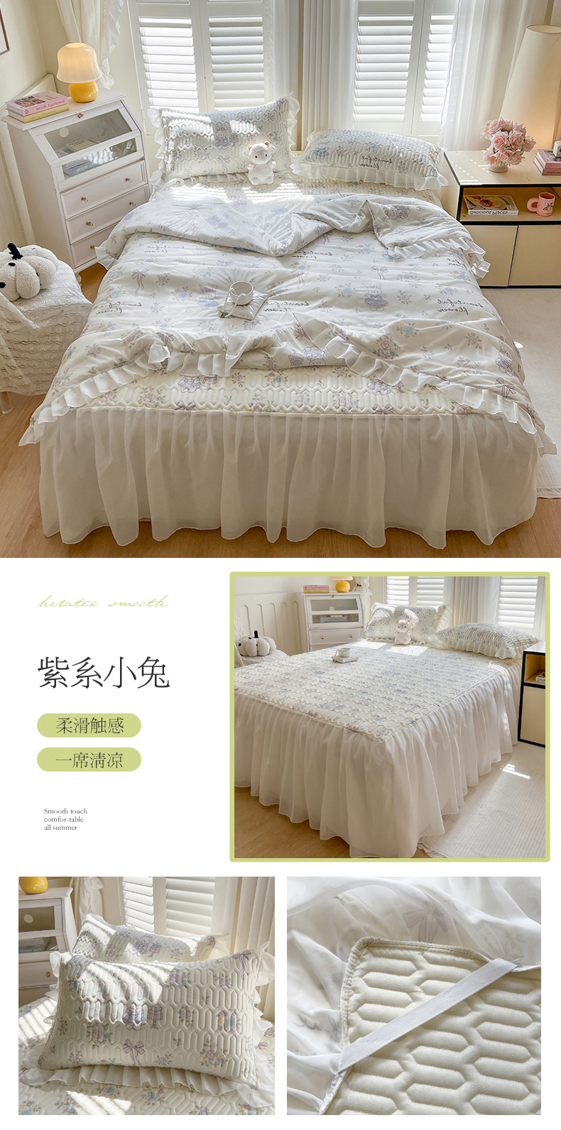 商品名称:慕澄2025新款小清新印花凉感丝花床裙款乳胶凉席 紫系小兔