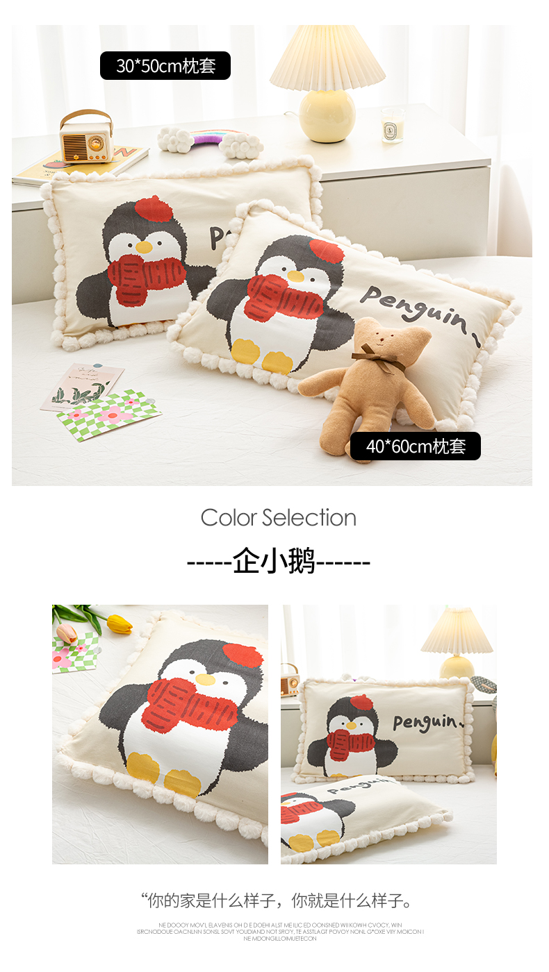 商品名称:萌番宝 2025新款100支云柔全棉磨毛儿童枕套卡通单件单枕套 企小鹅
