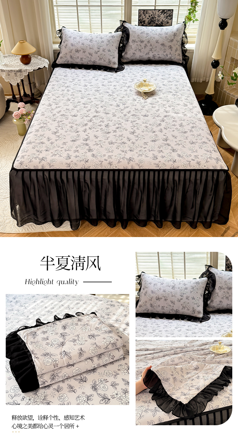 • 91家纺网 家纺一手货源 找家纺 大麦家纺 2025新款碳光冰丝软席子凉席-床裙款 德拉庄园