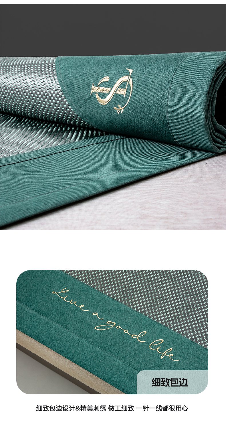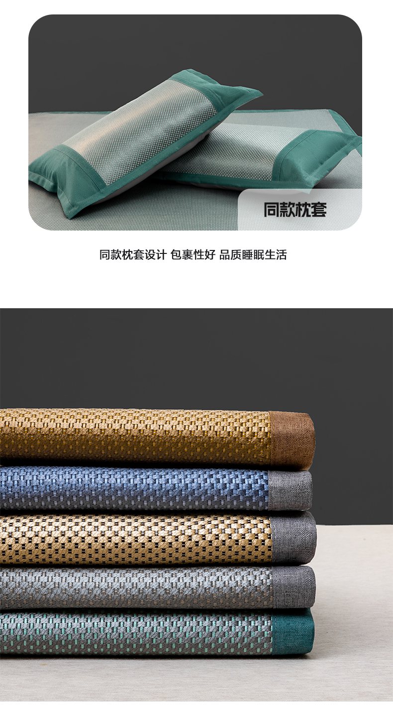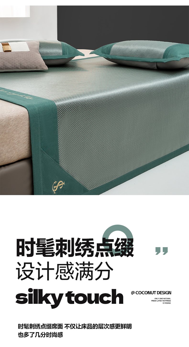 商品名称:宜家坊 2025新款A类纯色绣花冰藤席凉席三件套 松花绿-床席款