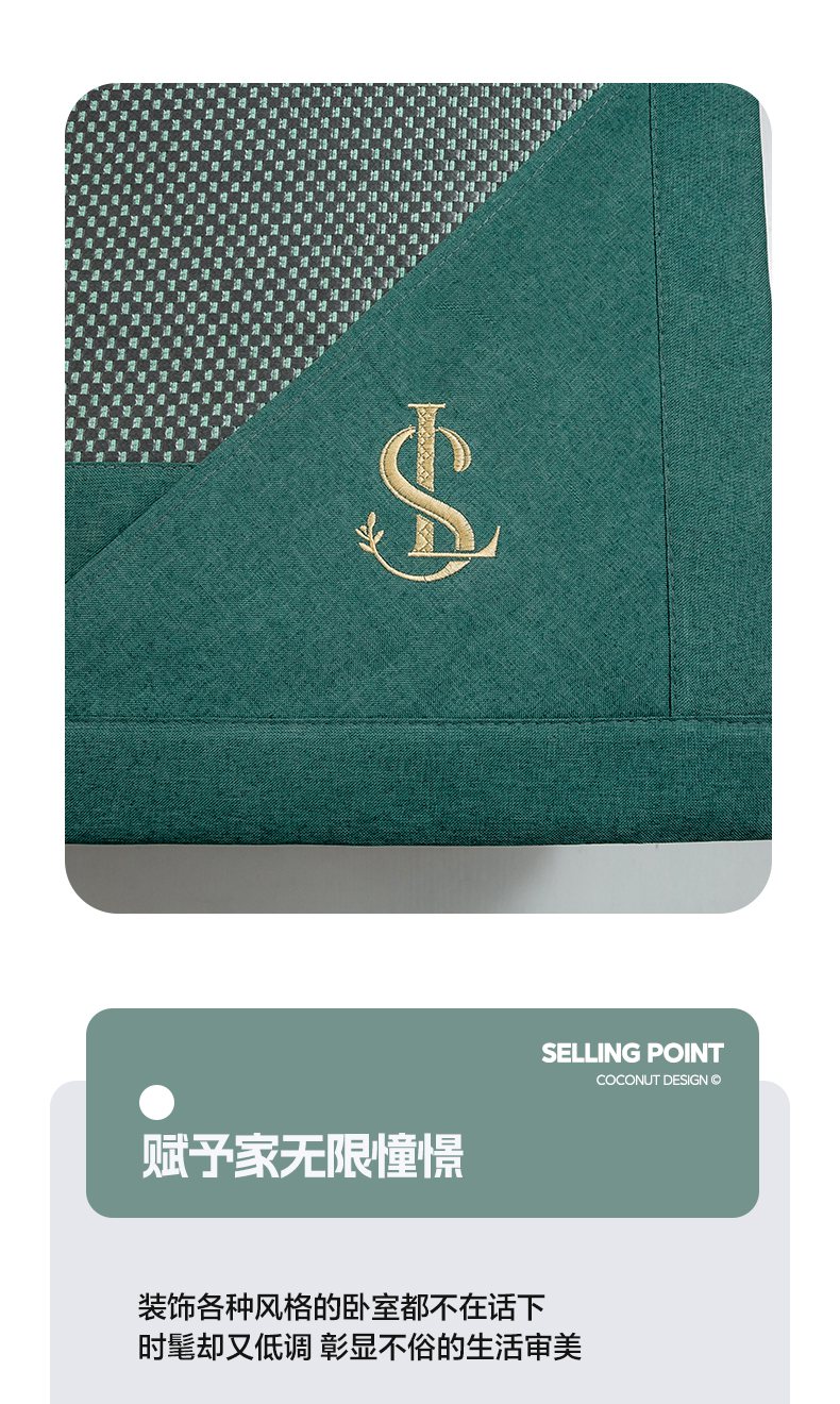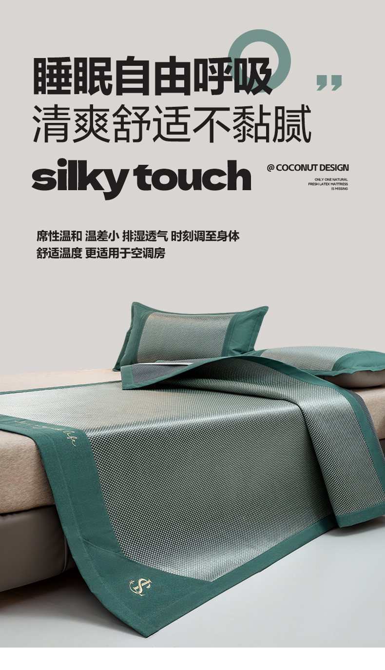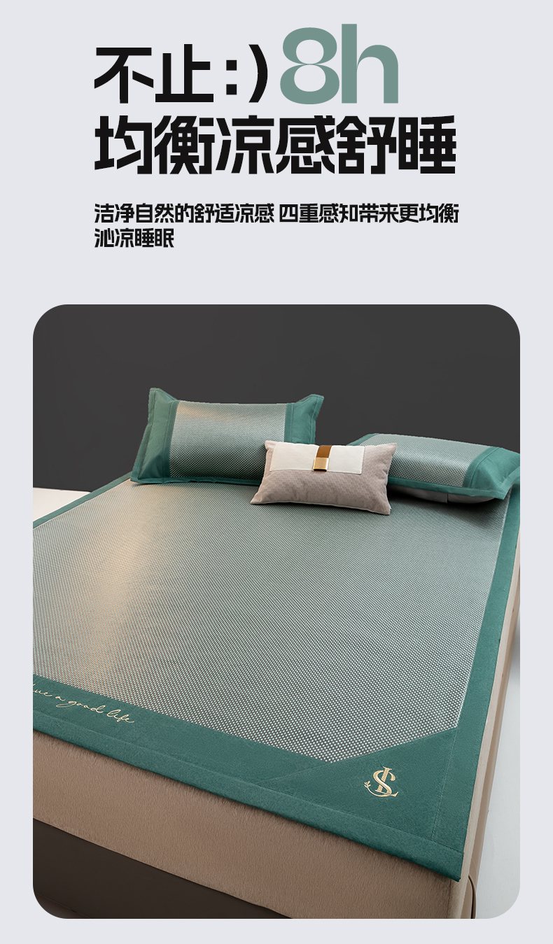商品名称:宜家坊 2025新款A类纯色绣花冰藤席凉席三件套 松花绿-床席款
