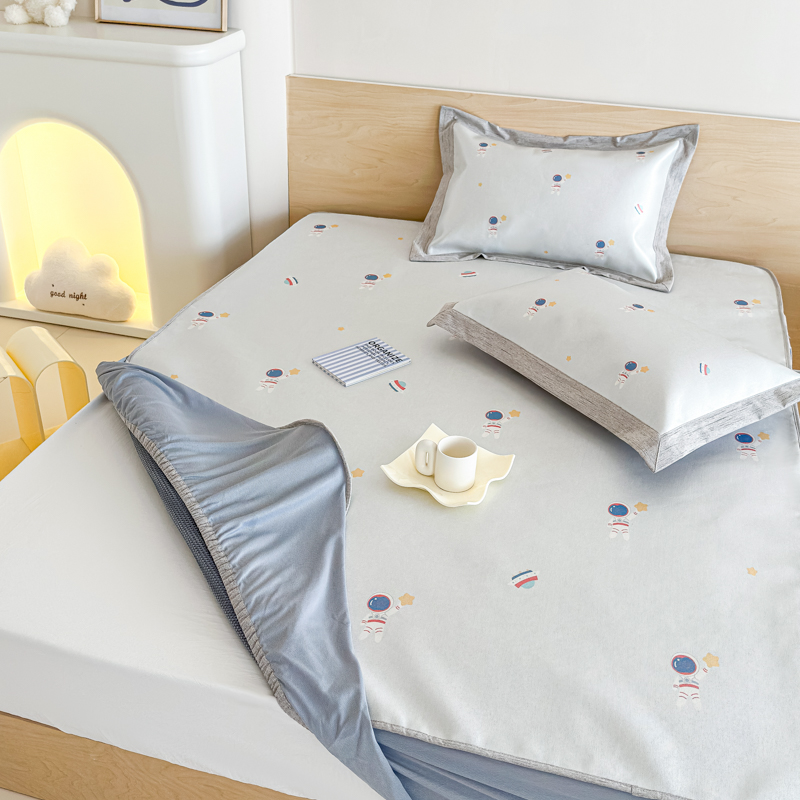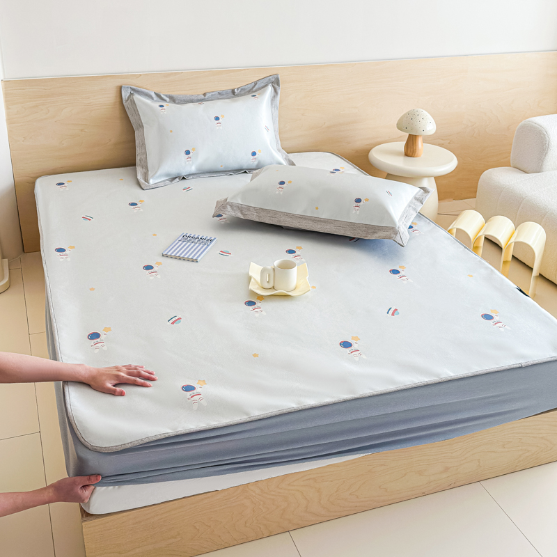 本希家居 2025春夏新款可水洗冰丝席花漾数码印花卡通系列 小小太空床笠