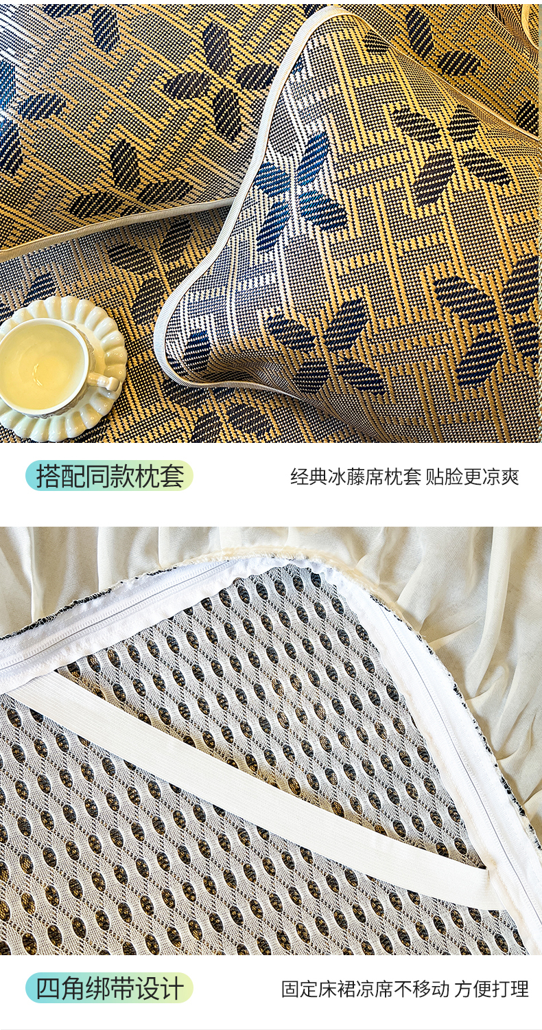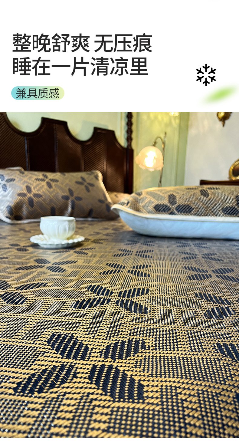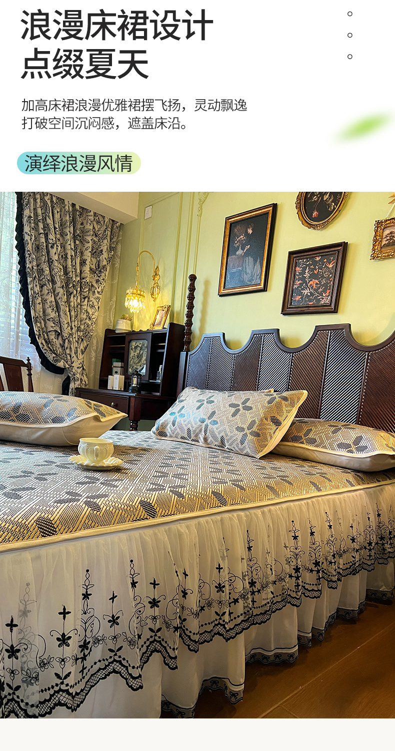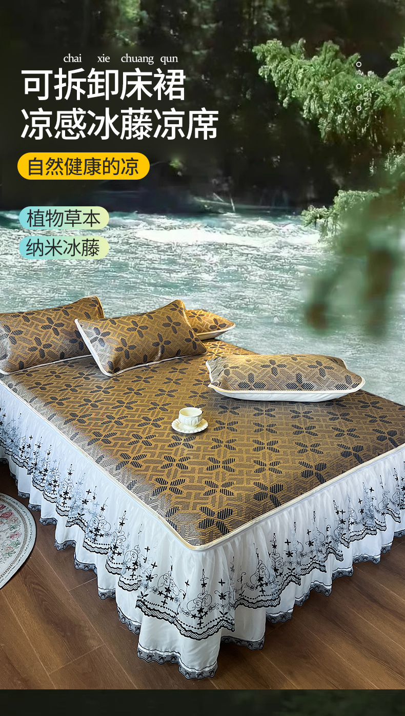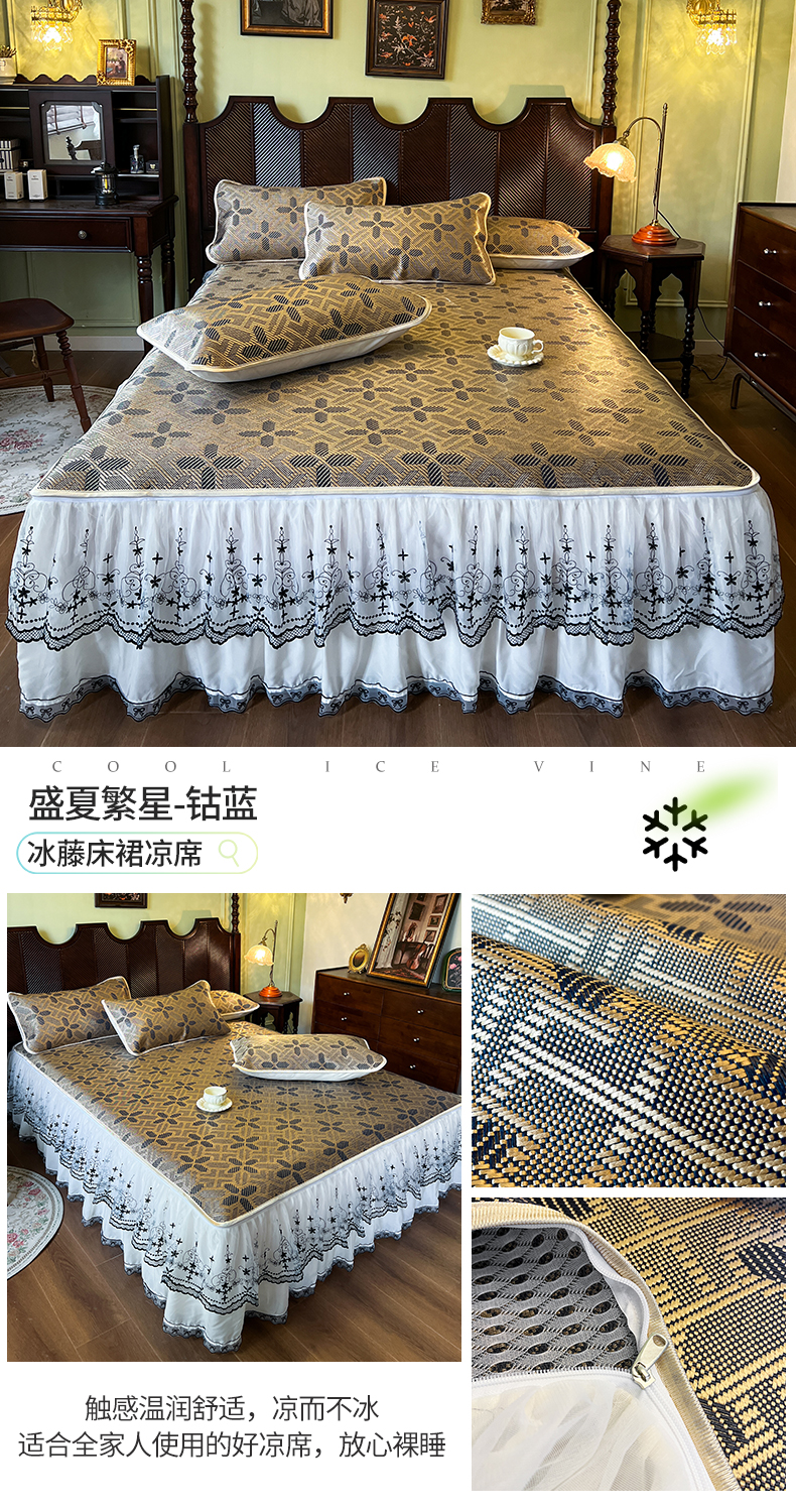 网红馆(ck家纺) 2025新款可脱卸床裙款冰藤席-盛夏繁星 钴蓝