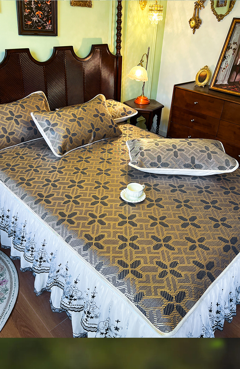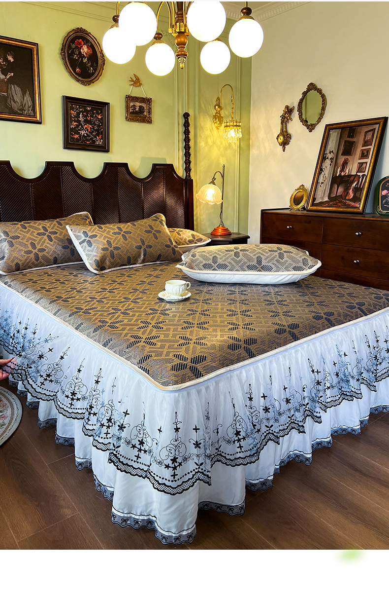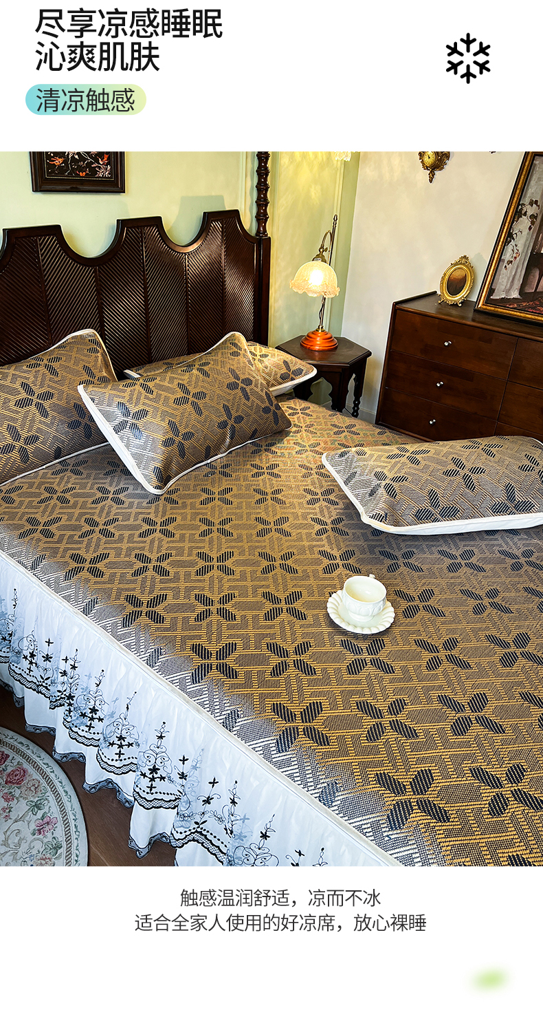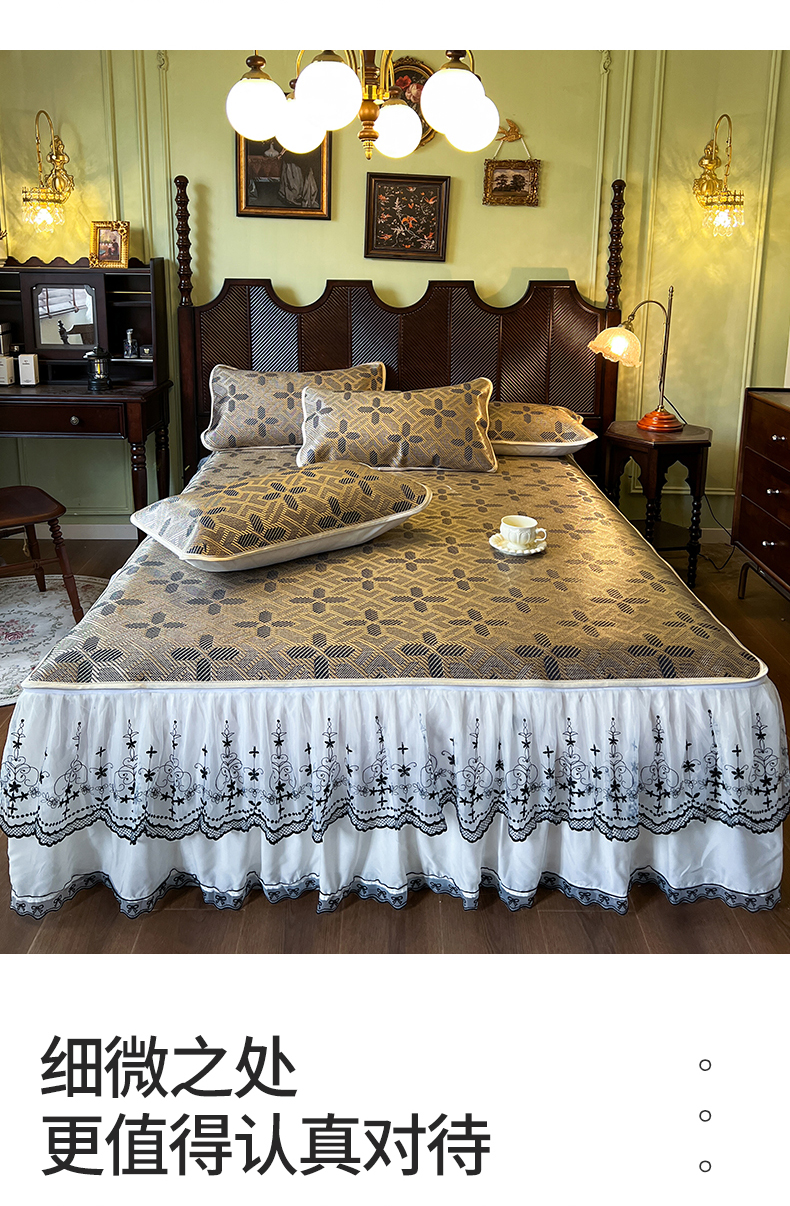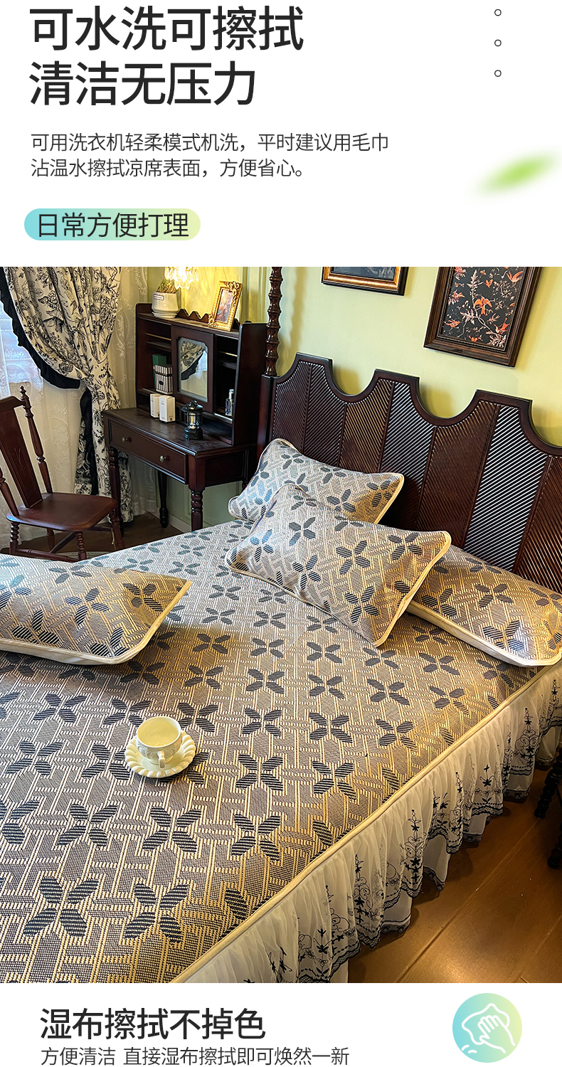 网红馆(ck家纺) 2025新款可脱卸床裙款冰藤席-盛夏繁星 钴蓝