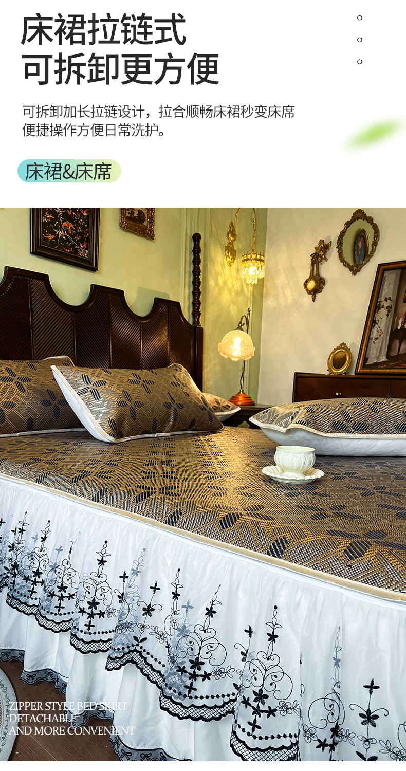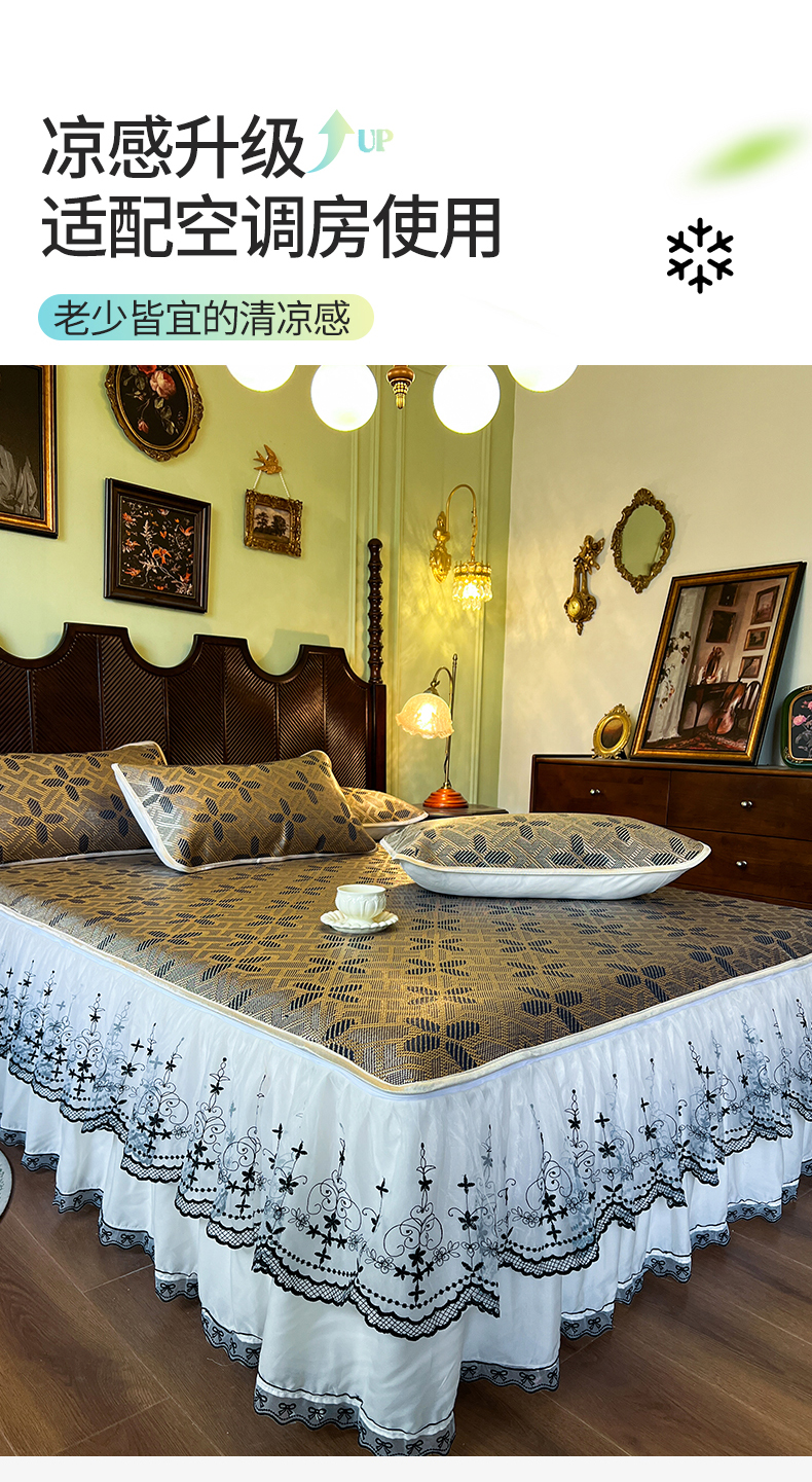 商品名称:网红馆(ck家纺) 2025新款可脱卸床裙款冰藤席-盛夏繁星 钴蓝