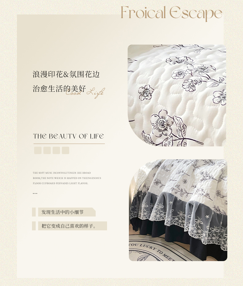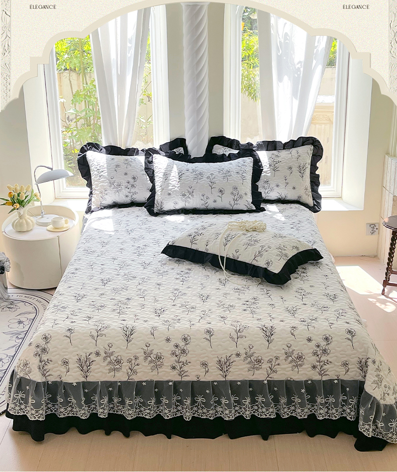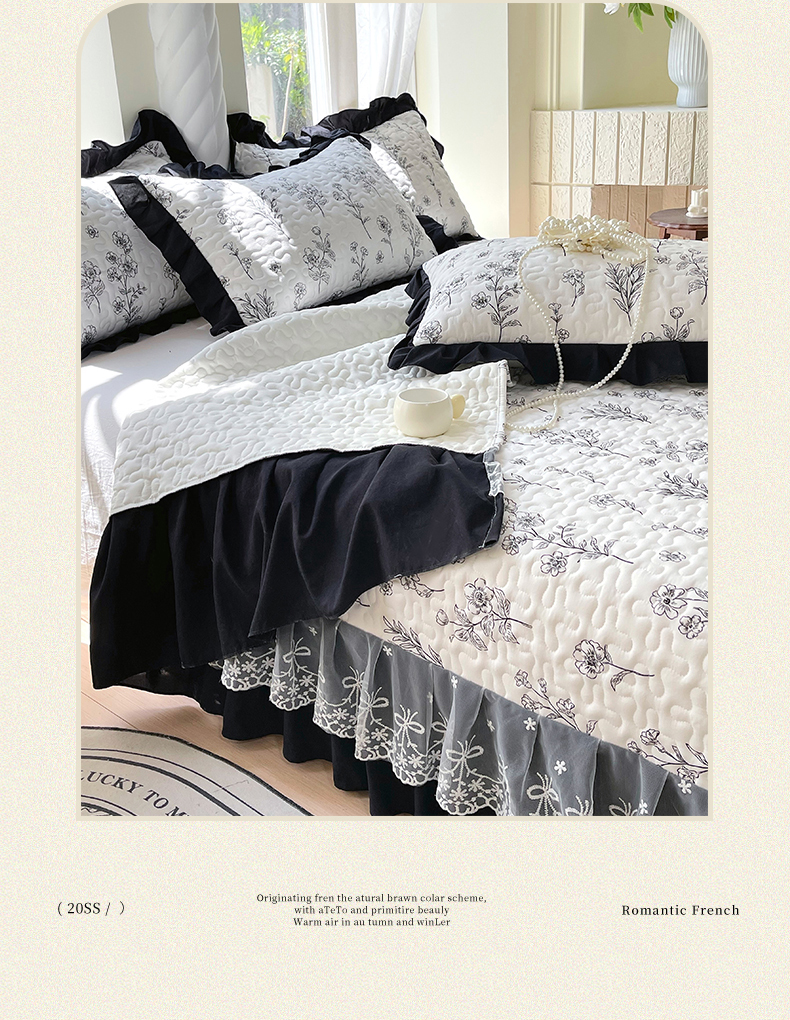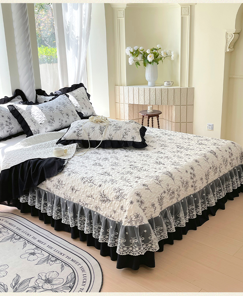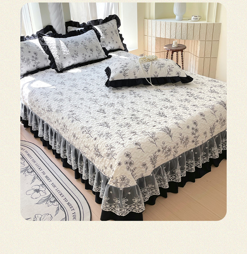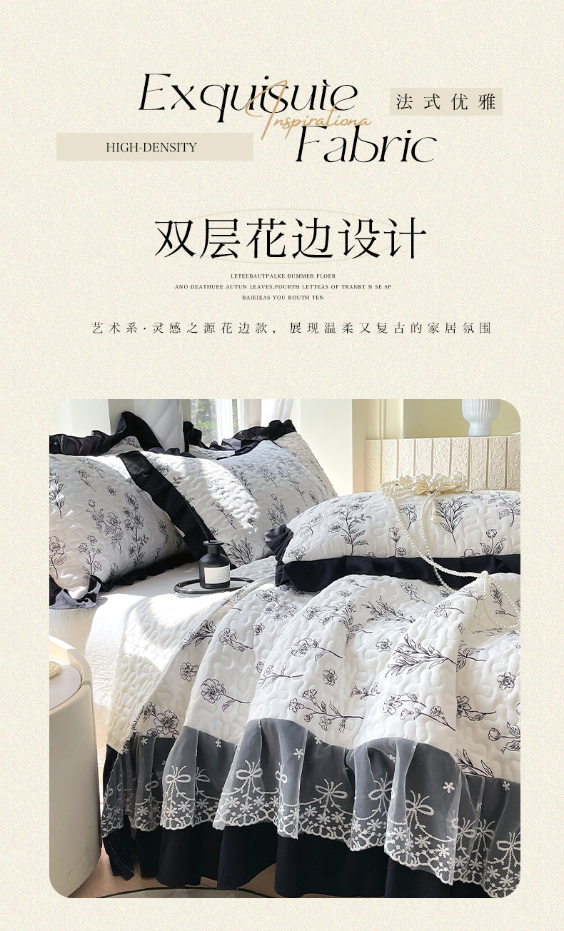 • 91家纺网 家纺一手货源 找家纺 雨彤家纺 2025年新款赫本风云朵水洗棉夹棉双层花边床盖 爱枝蔓-赫本风