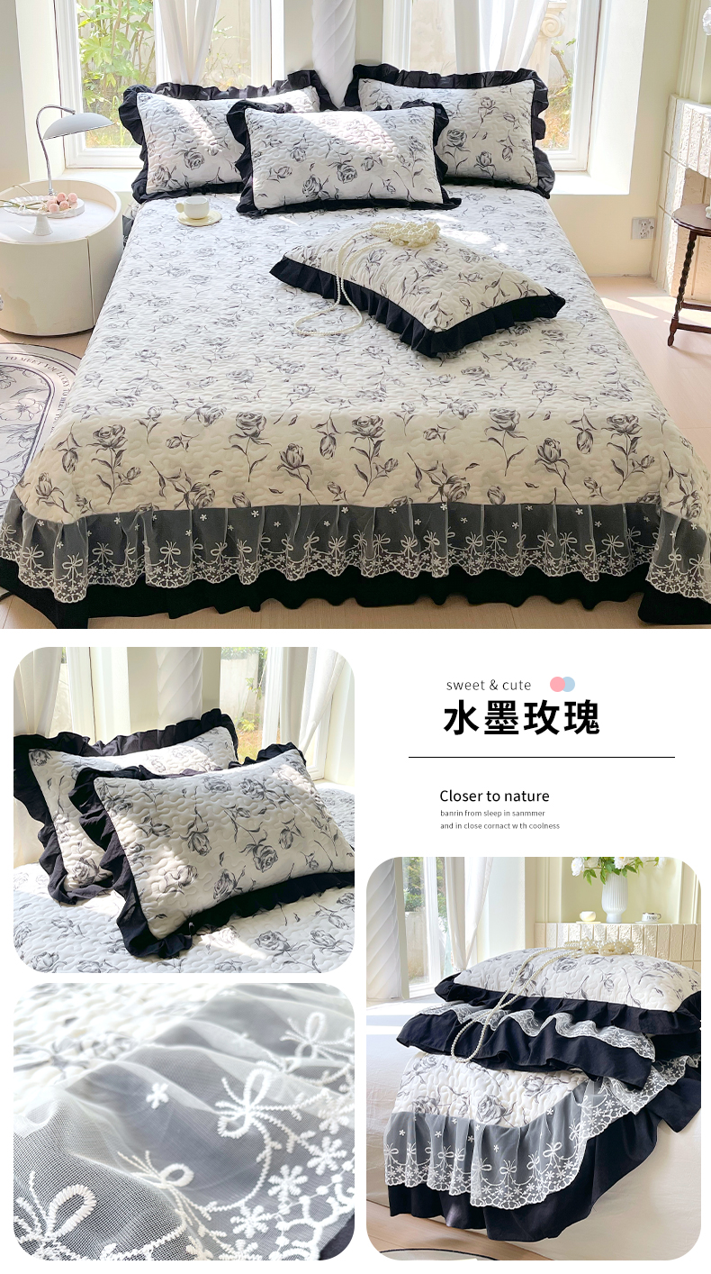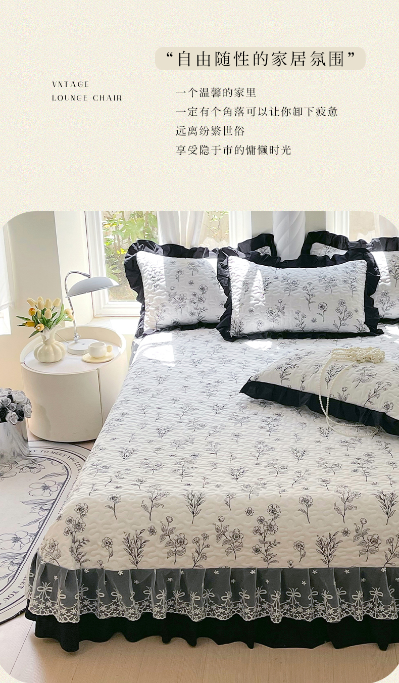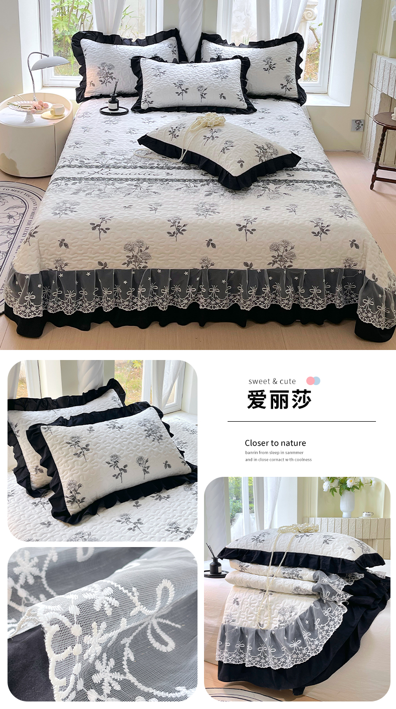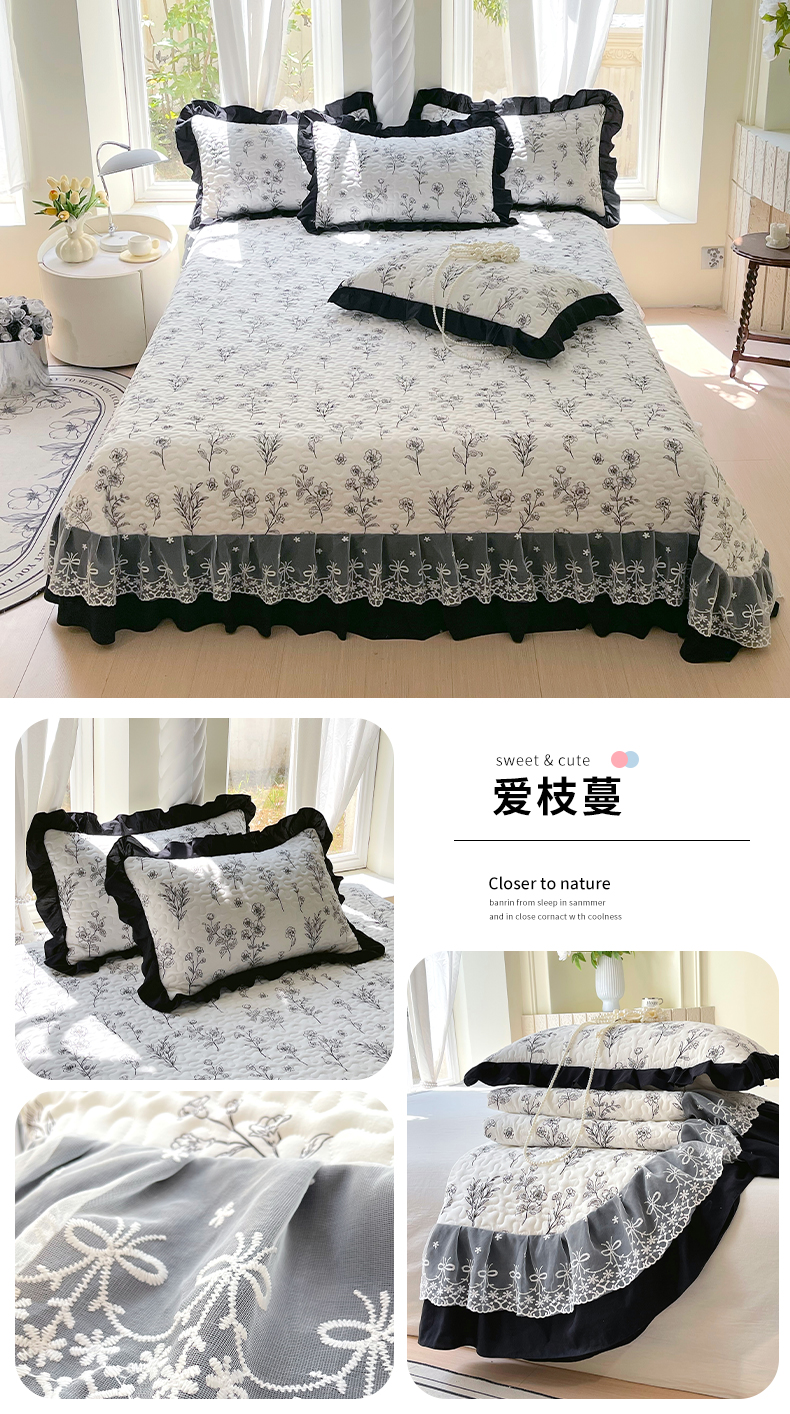 雨彤家纺 2025年新款赫本风云朵水洗棉夹棉双层花边床盖 爱枝蔓-赫本风