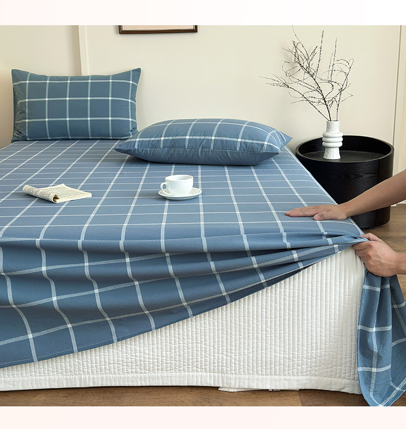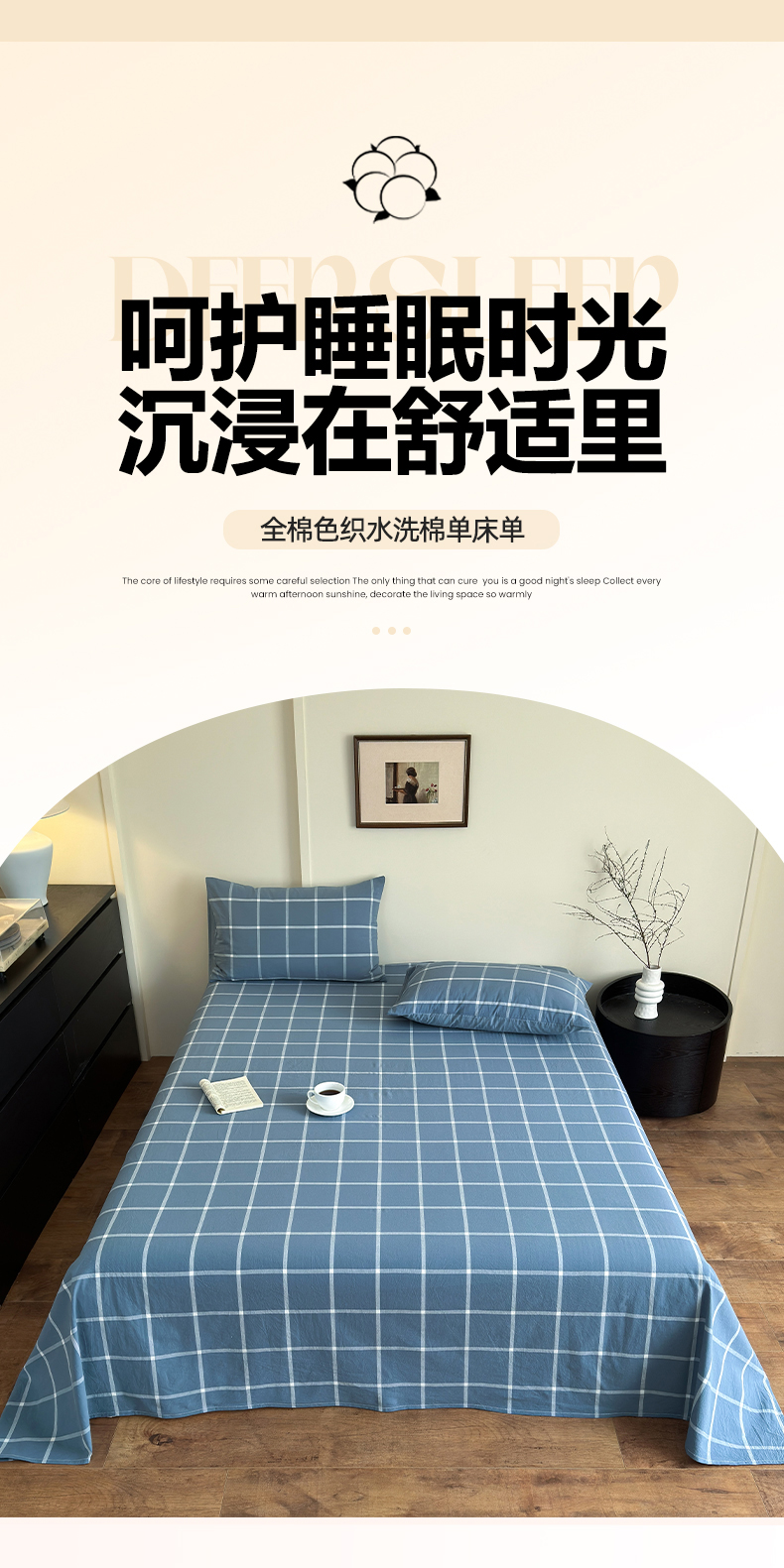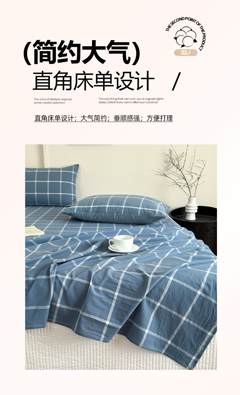 吉象家纺 2025新款全棉色织水洗棉床单三件套 大蓝格