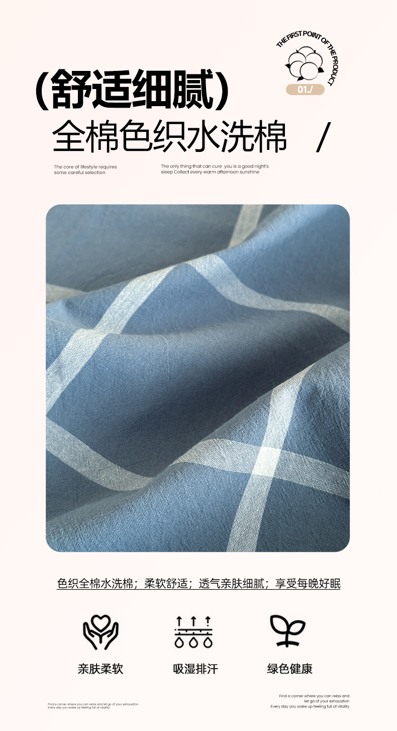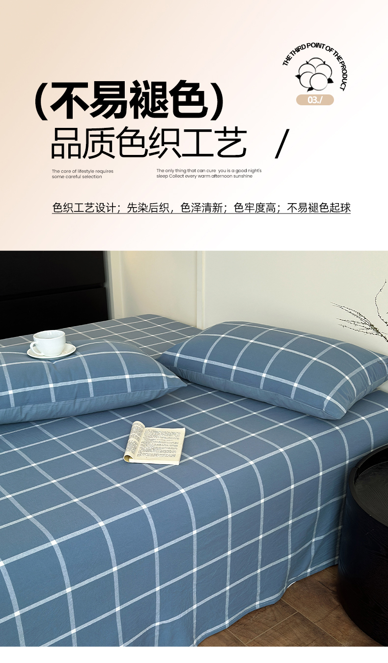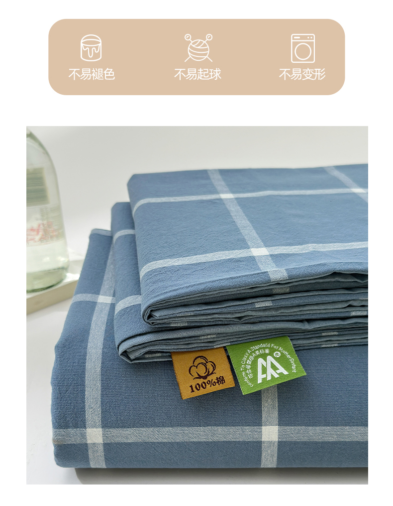 • 91家纺网 家纺一手货源 找家纺 吉象家纺 2025新款全棉色织水洗棉床单三件套 大蓝格
