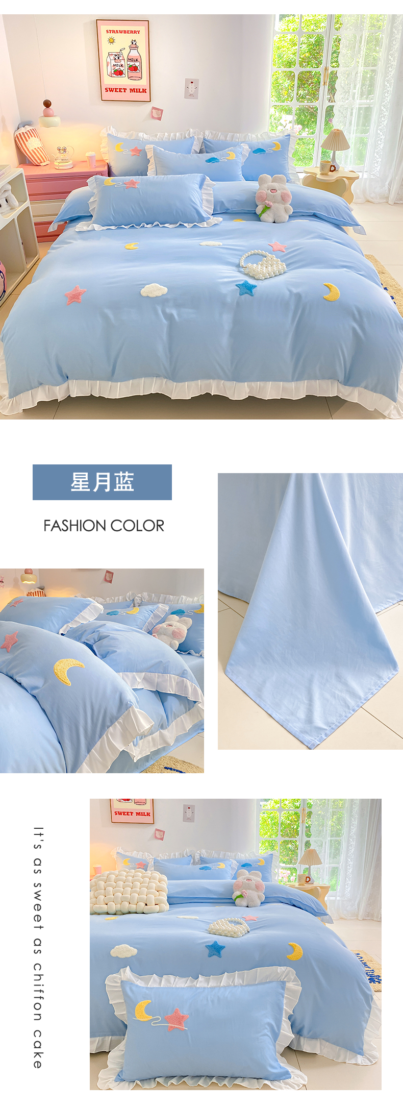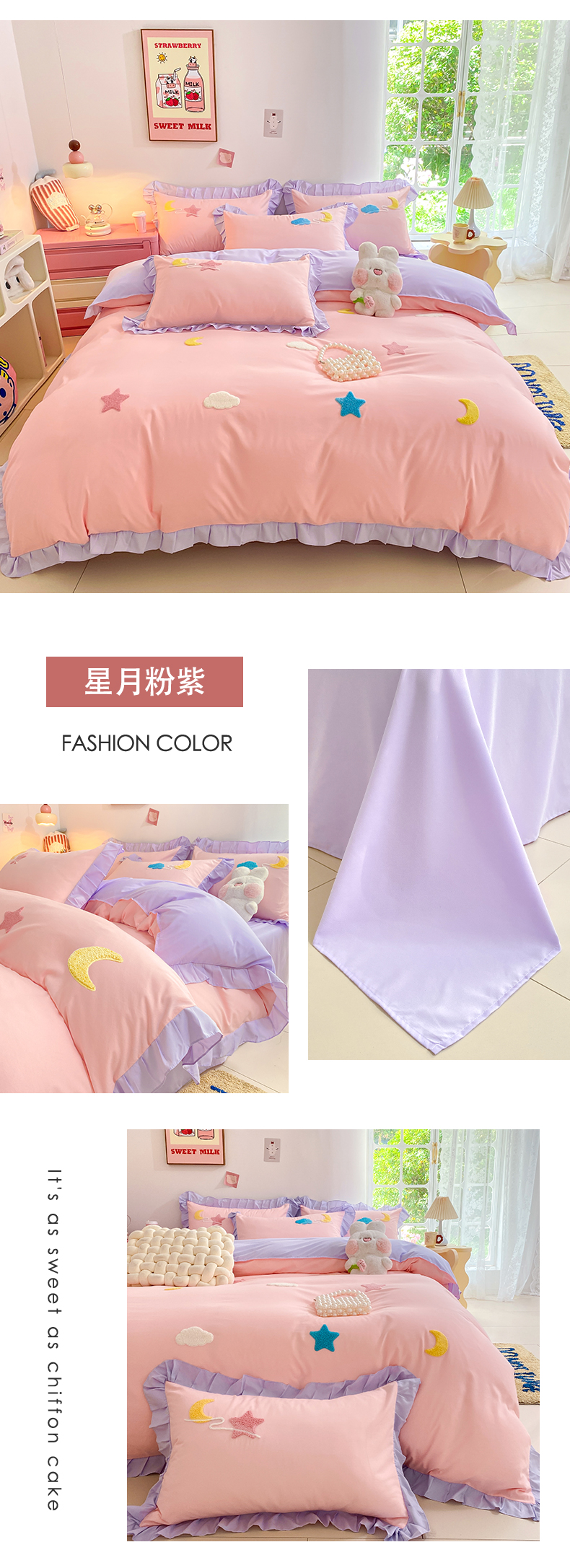 (总)雨菲家纺 2025新款公主风水洗棉四件套-星月