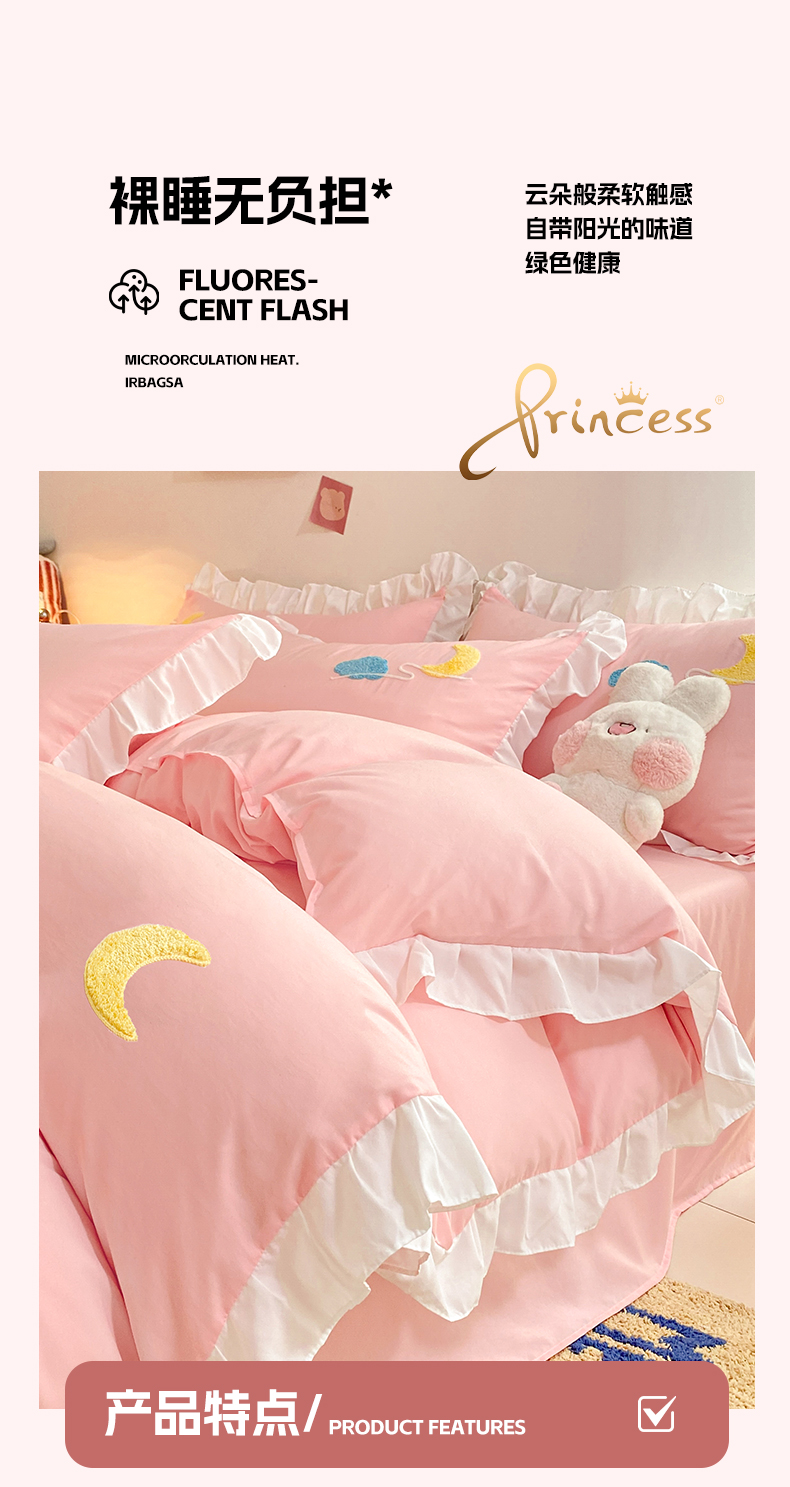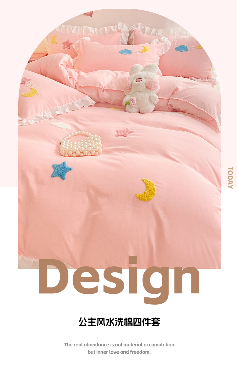 商品名称:(总)雨菲家纺 2025新款公主风水洗棉四件套-星月