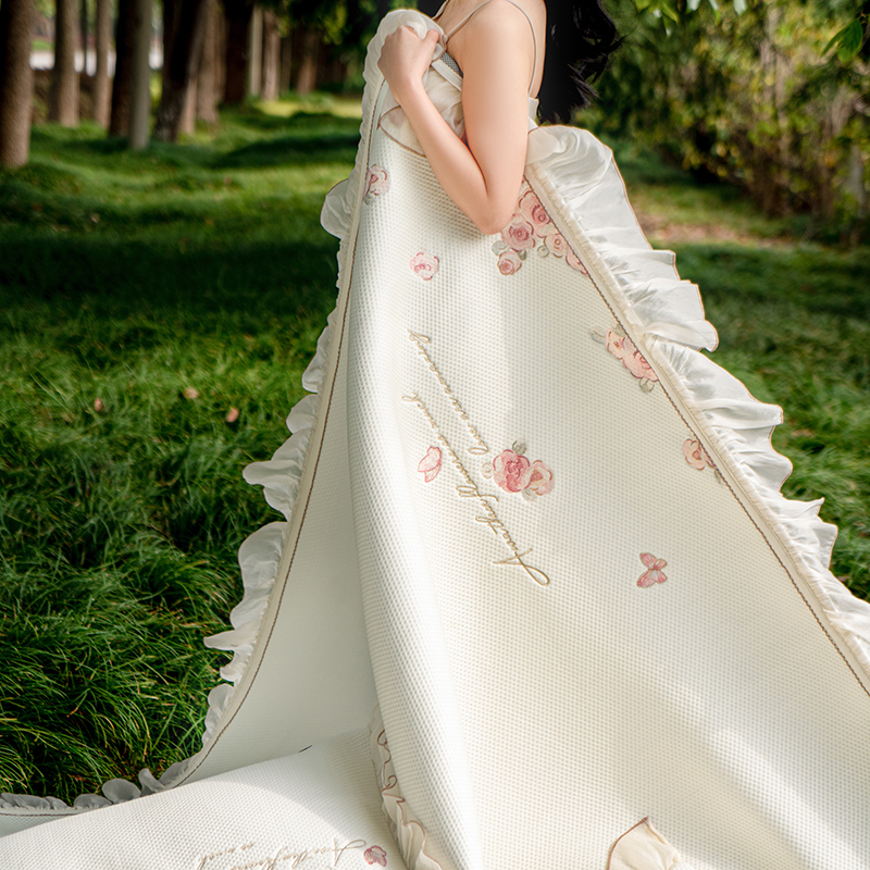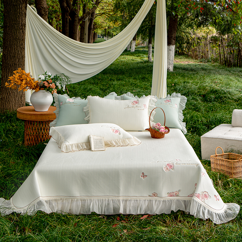 禾时 2025新款高端A类母婴级加密加厚450g品牌凉感丝啵啵面料床盖三件套夹棉床单 奶油白