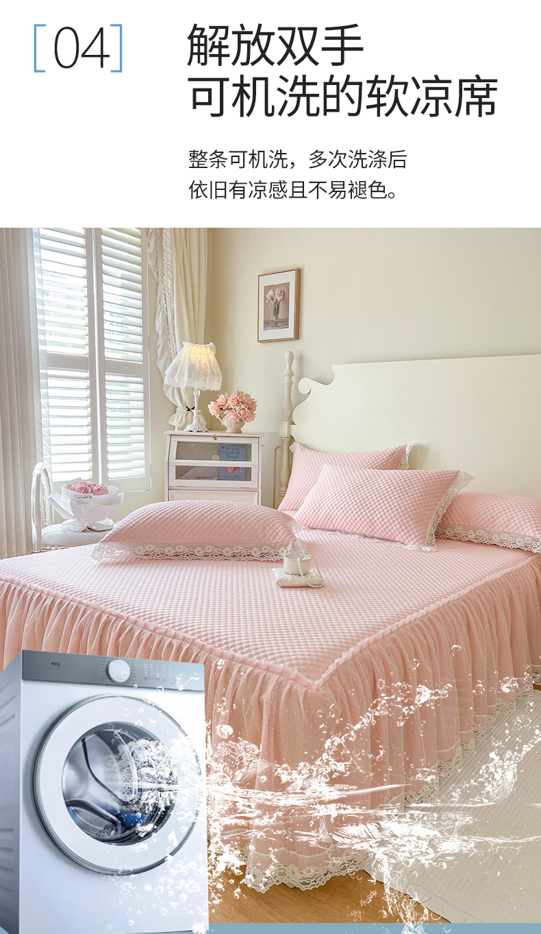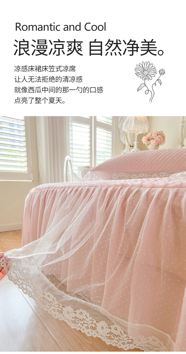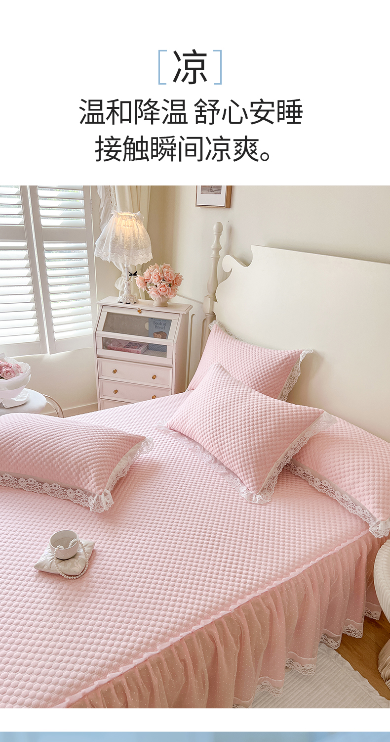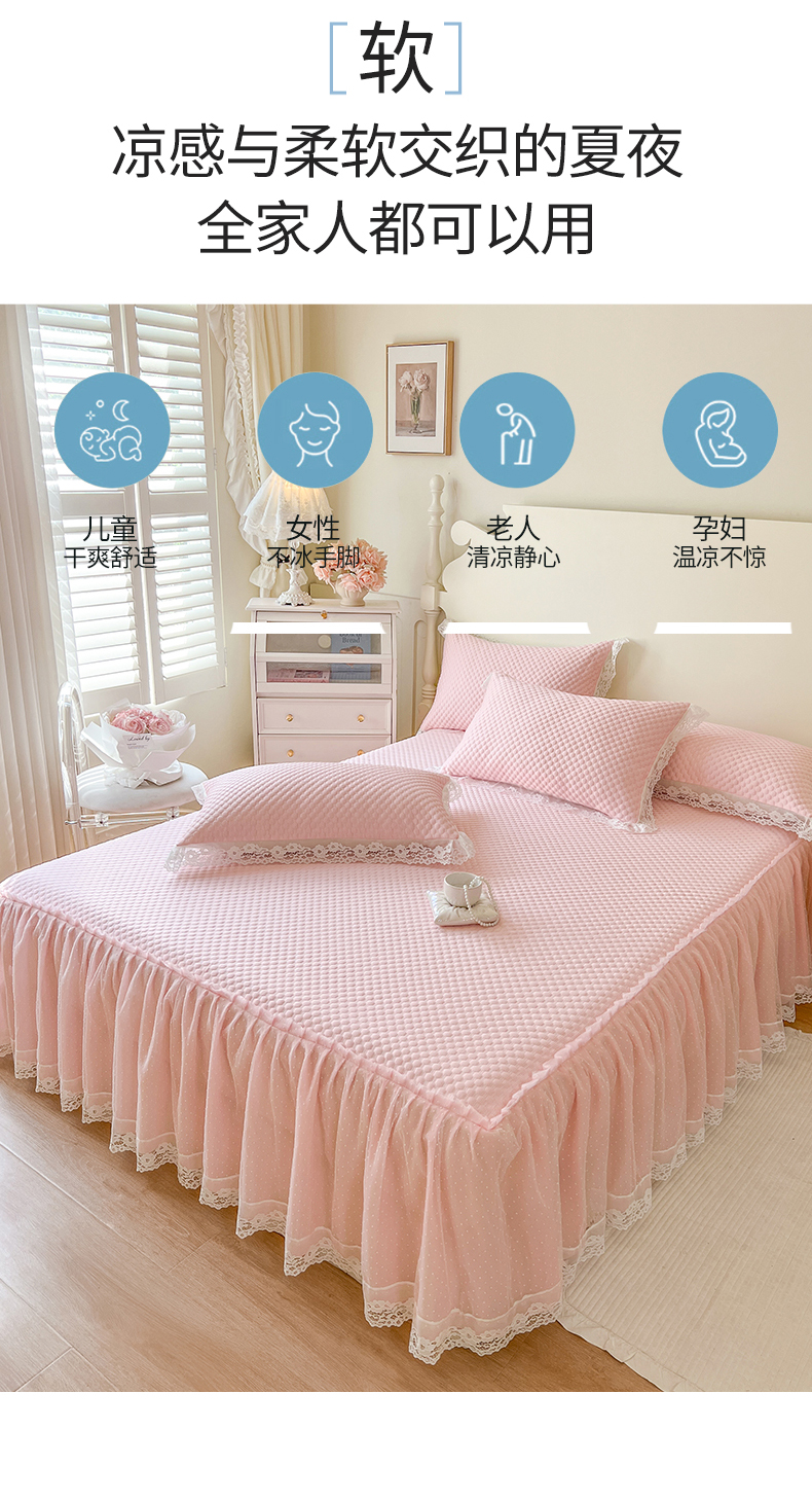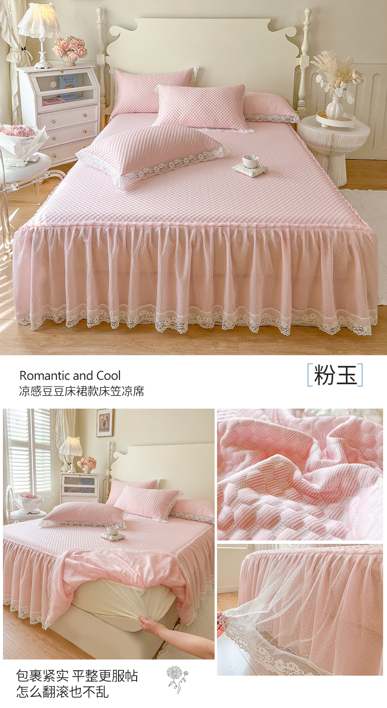 商品名称:网红馆(ck家纺) 2025新款床笠式床裙豆豆凉席--简单爱 粉玉