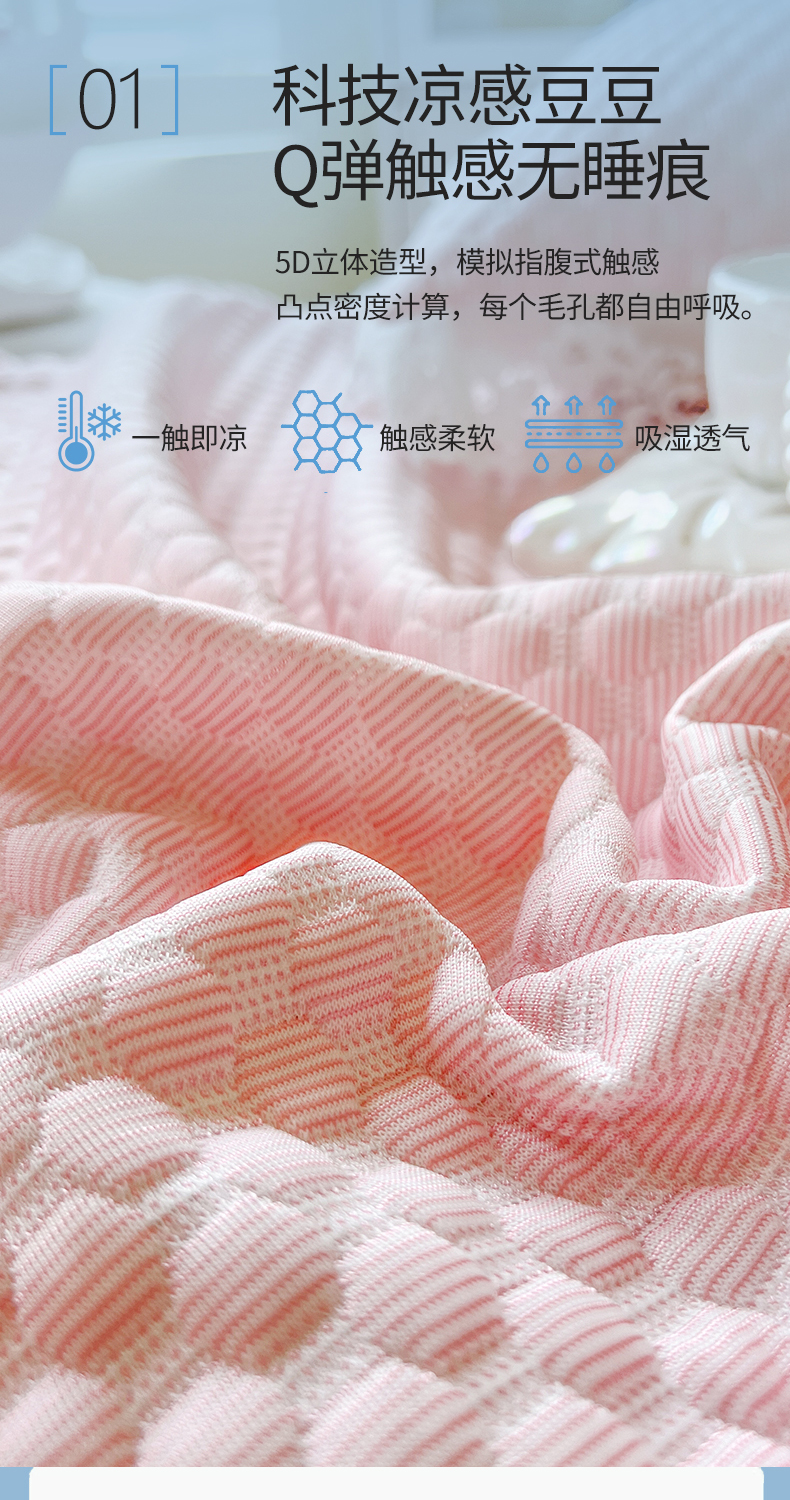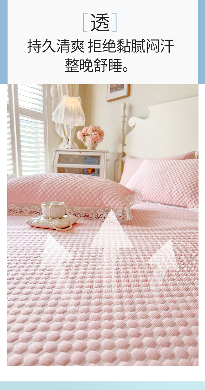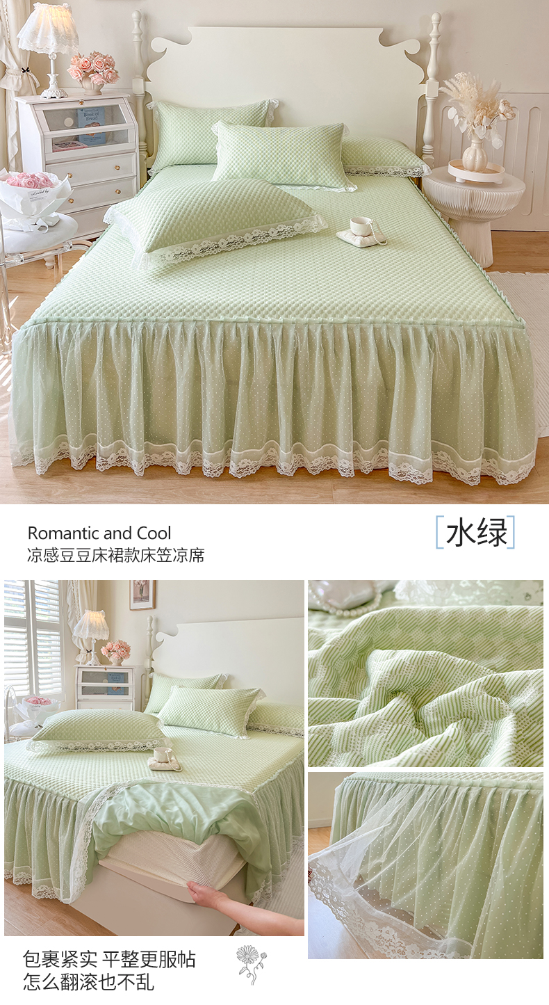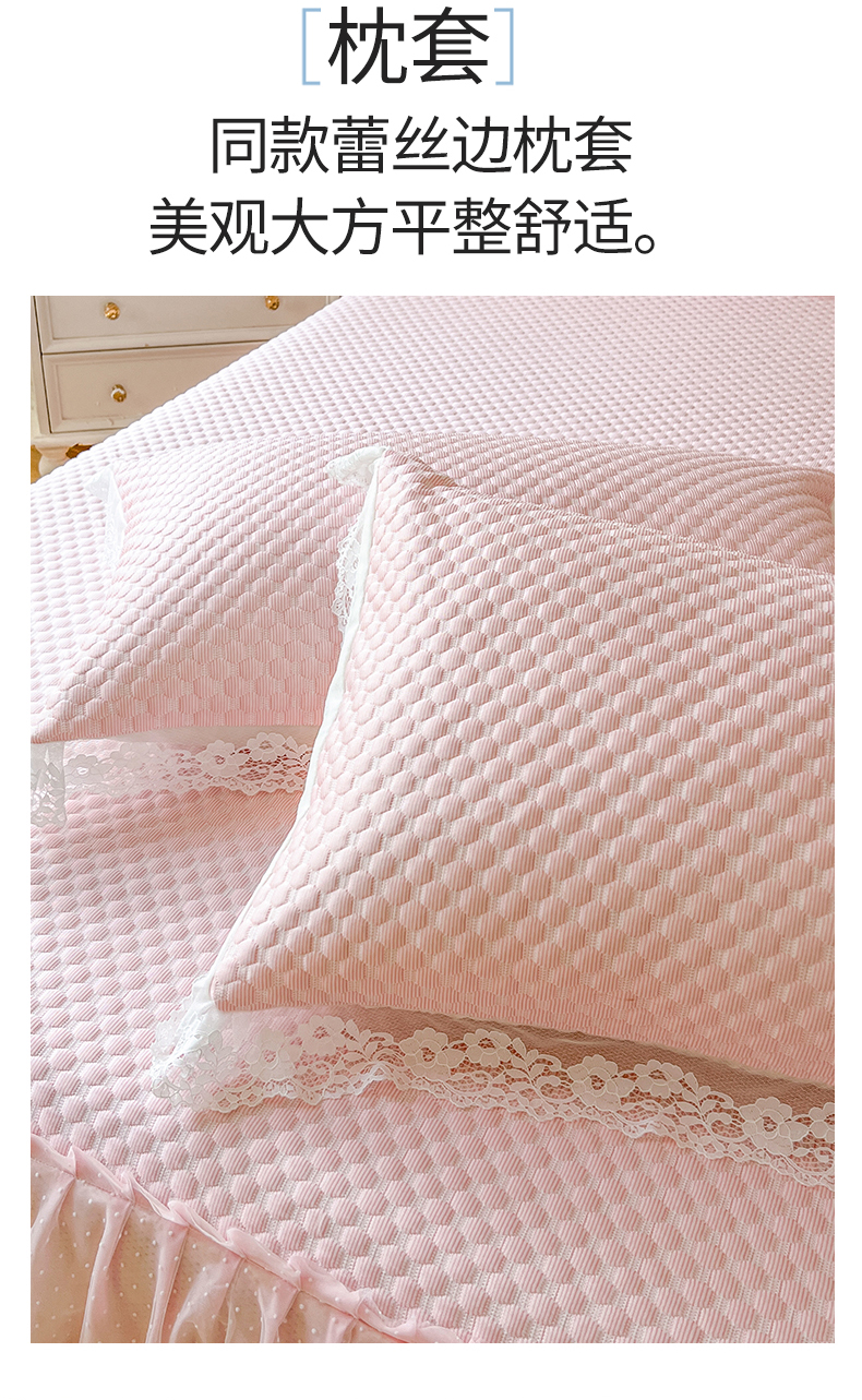 商品名称:网红馆(ck家纺) 2025新款床笠式床裙豆豆凉席--简单爱 粉玉