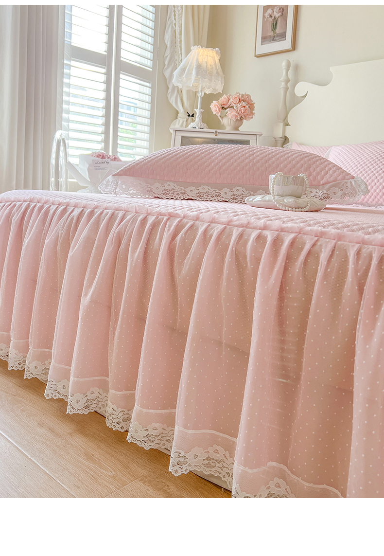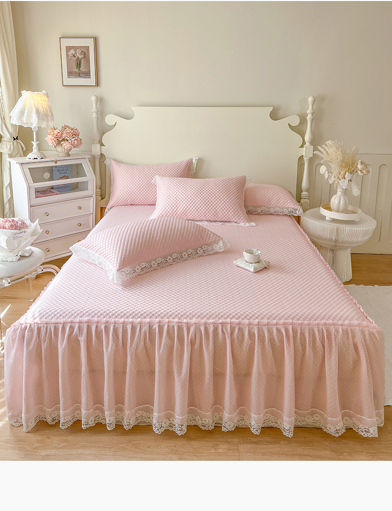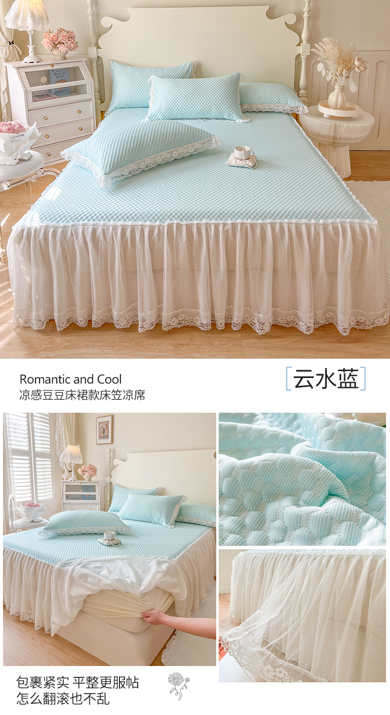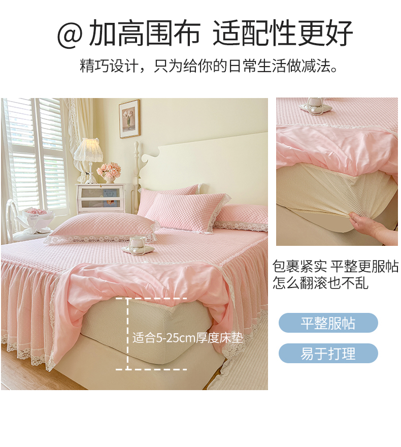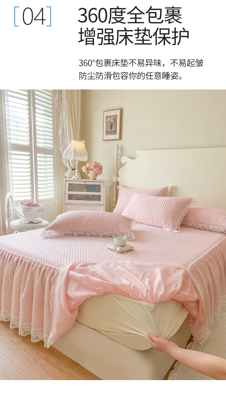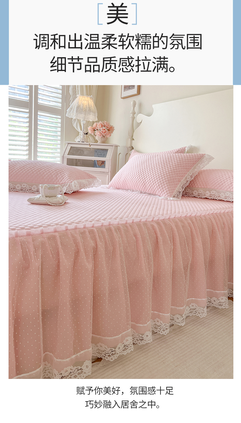 商品名称:网红馆(ck家纺) 2025新款床笠式床裙豆豆凉席--简单爱 粉玉