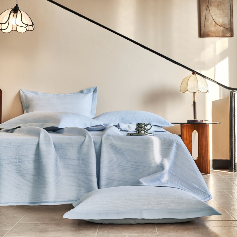 商品名称:席之家 2025新款高品质A类空气层可水洗凉感色织床单三件套-檀雅系列 檀雅-浅灰