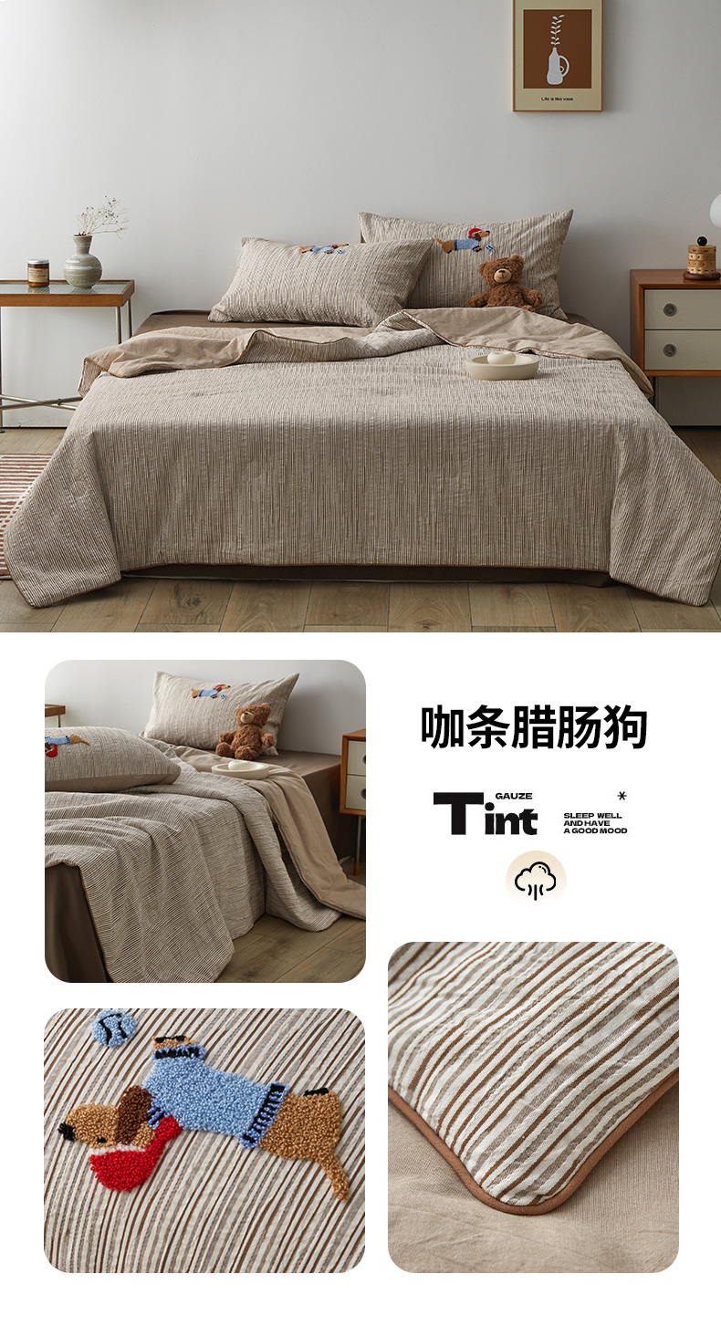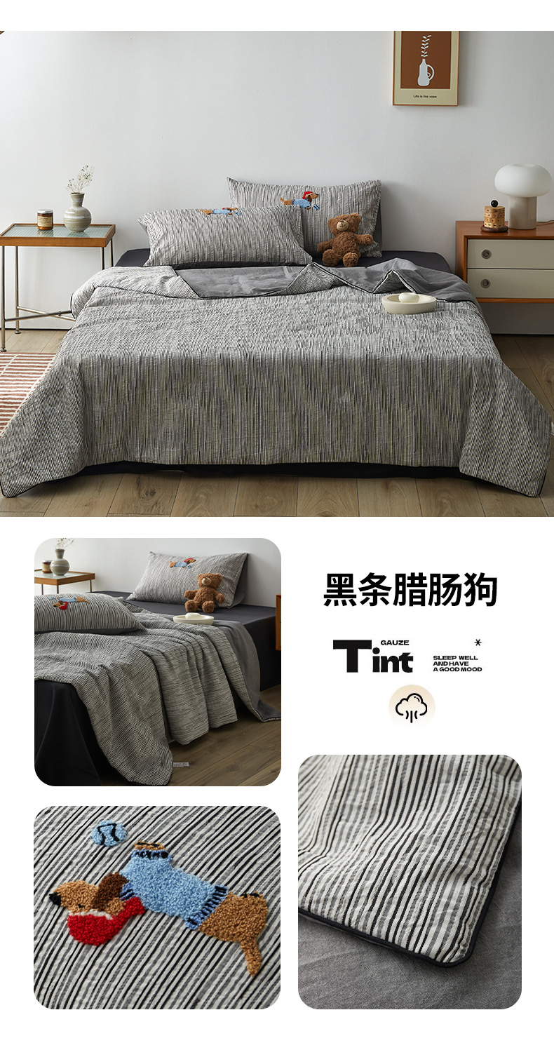 当前位置: 91家纺网 > 商品网购 > 床品套件 > 四件套 > 夏被四件套 > 怡家居 2025新款色织大提花腊肠狗夏被夏凉被空调被四件套 夏被-黑条腊肠狗