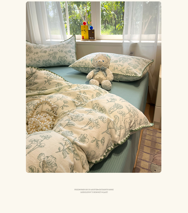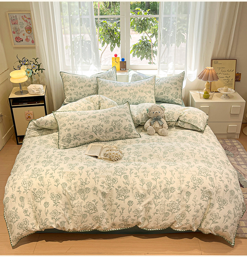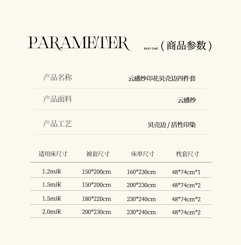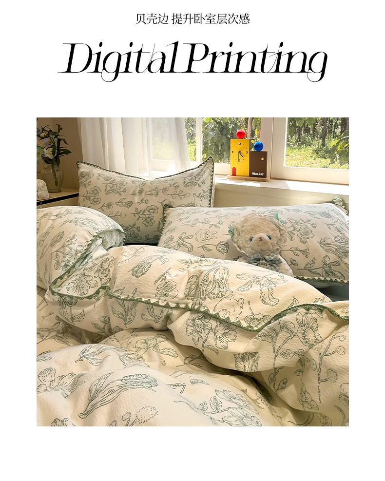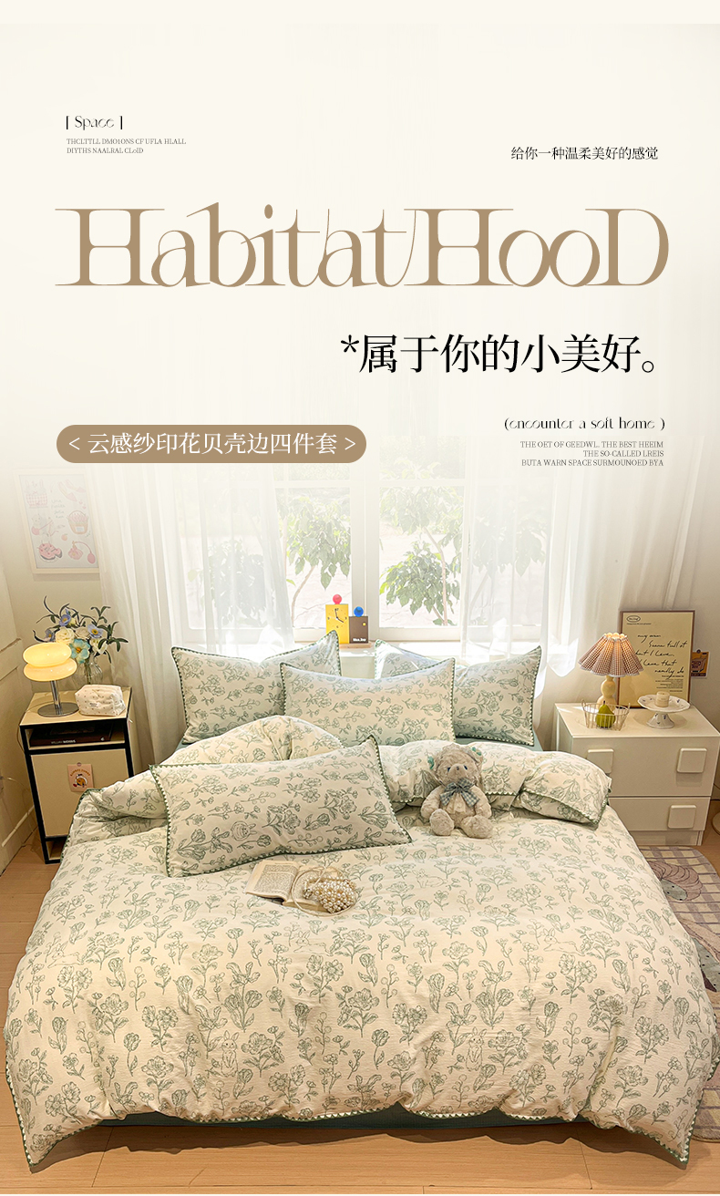 商品名称:(总)罗亿家纺 2025新款韩系云感纱贝壳边四件套(提供买家秀)