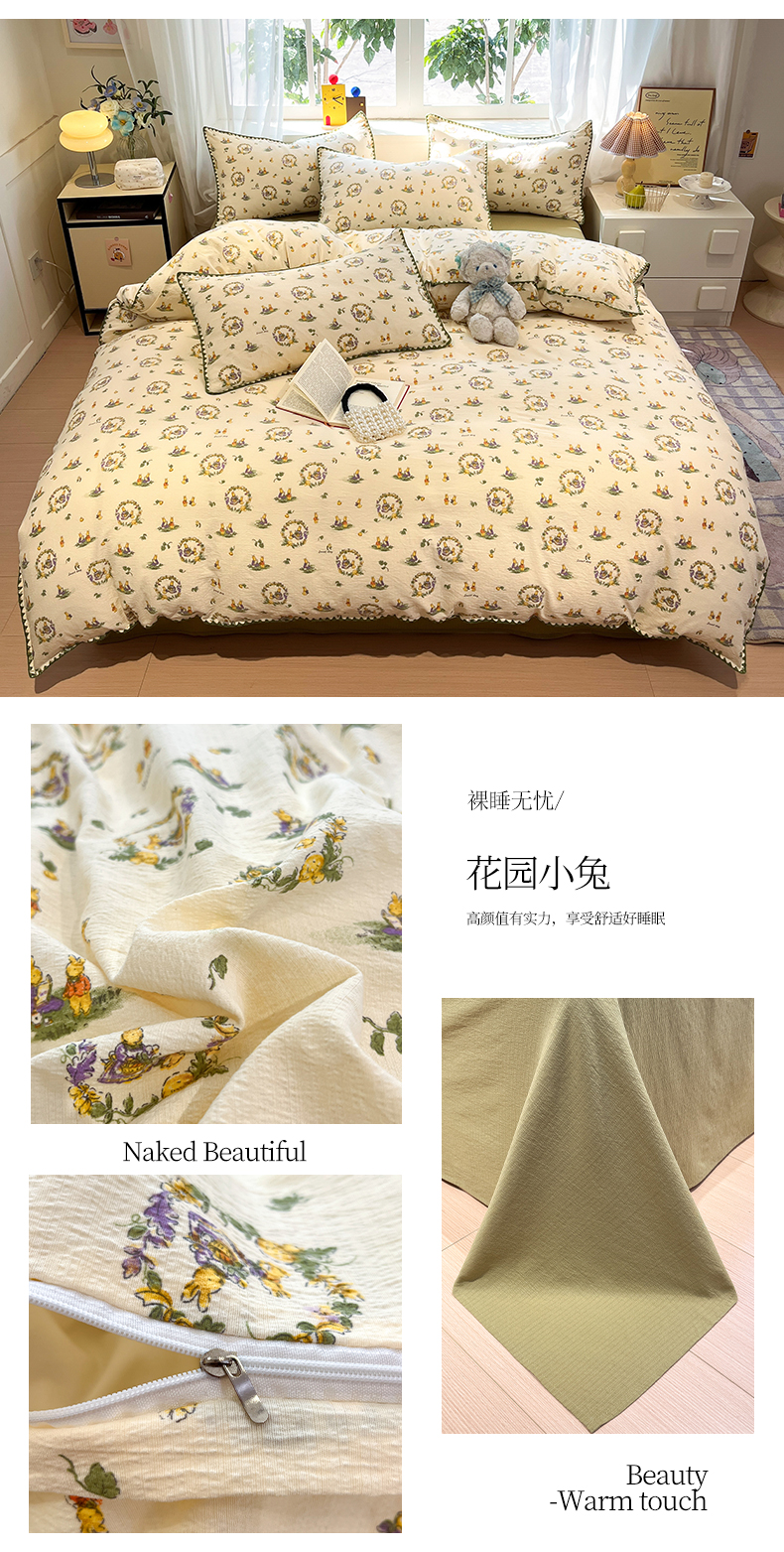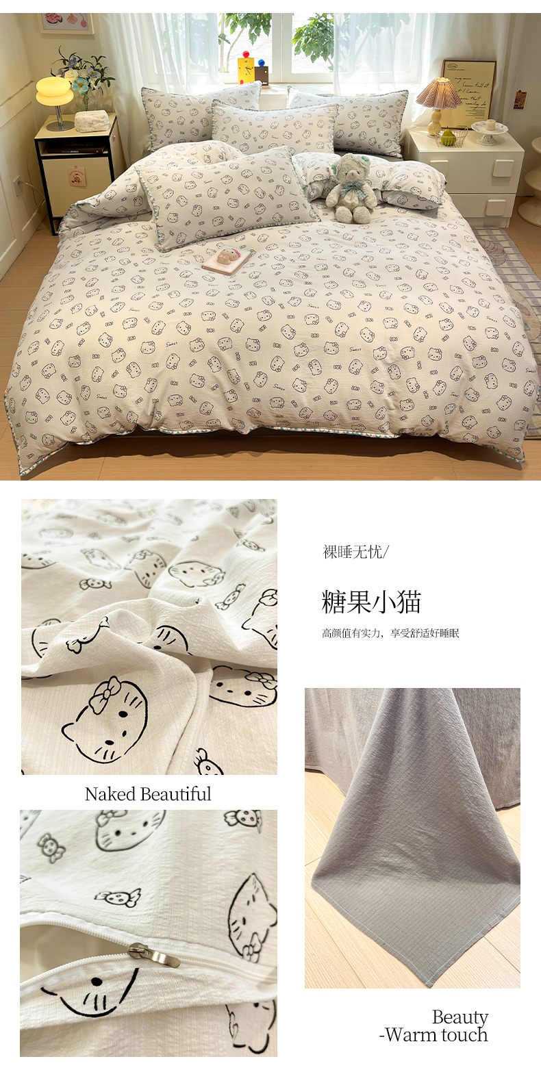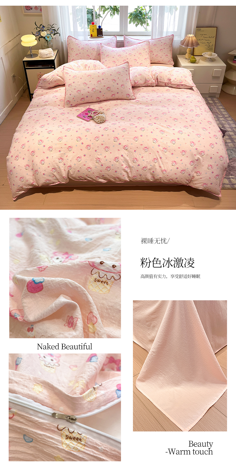 (总)罗亿家纺 2026新款A类古法水洗仿棉云感纱四件套,俏皮豹纹-kt-粉,小幸运,花颜,甜品小猫,爱心甜猫,梦境花园,芝士莓莓熊,蝴蝶结,冰淇淋超甜,奶味星人,狗狗乐园,花花kt梦,小时光,小鱼的心事,旋转木马,樱桃格格,葡萄很甜,花集小兔,焦糖LABUBU,梦幻乐园,绿萌兔子,烟花星语